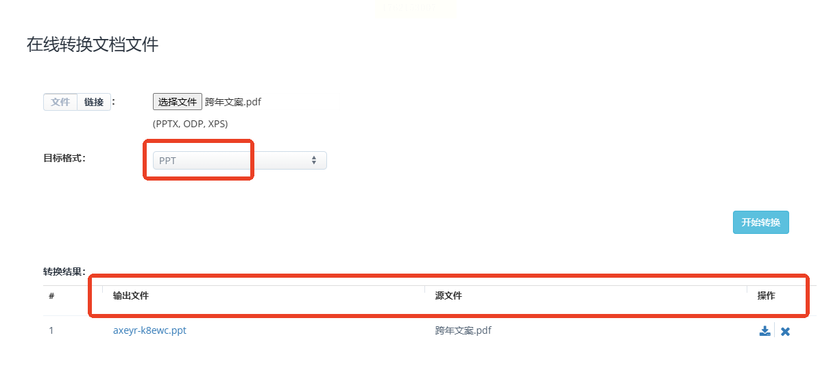 步骤四:点击转换,结果文件会显示在页面下方,供您下载。