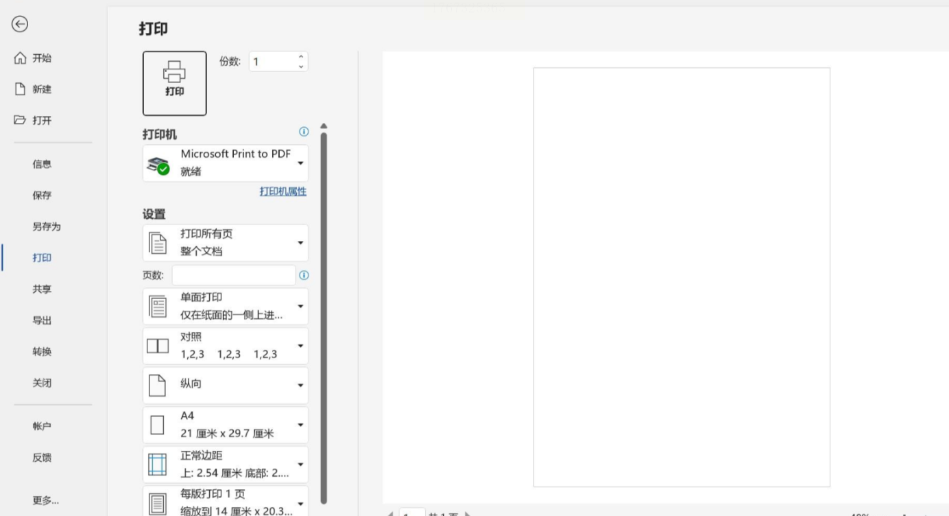 3. 在打印机选择区域,点击下拉菜单,找到并选择“Microsoft Print to PDF”选项。这是Windows系统自带的虚拟PDF打印机,可以将任何可打印的内容输出为PDF文件。