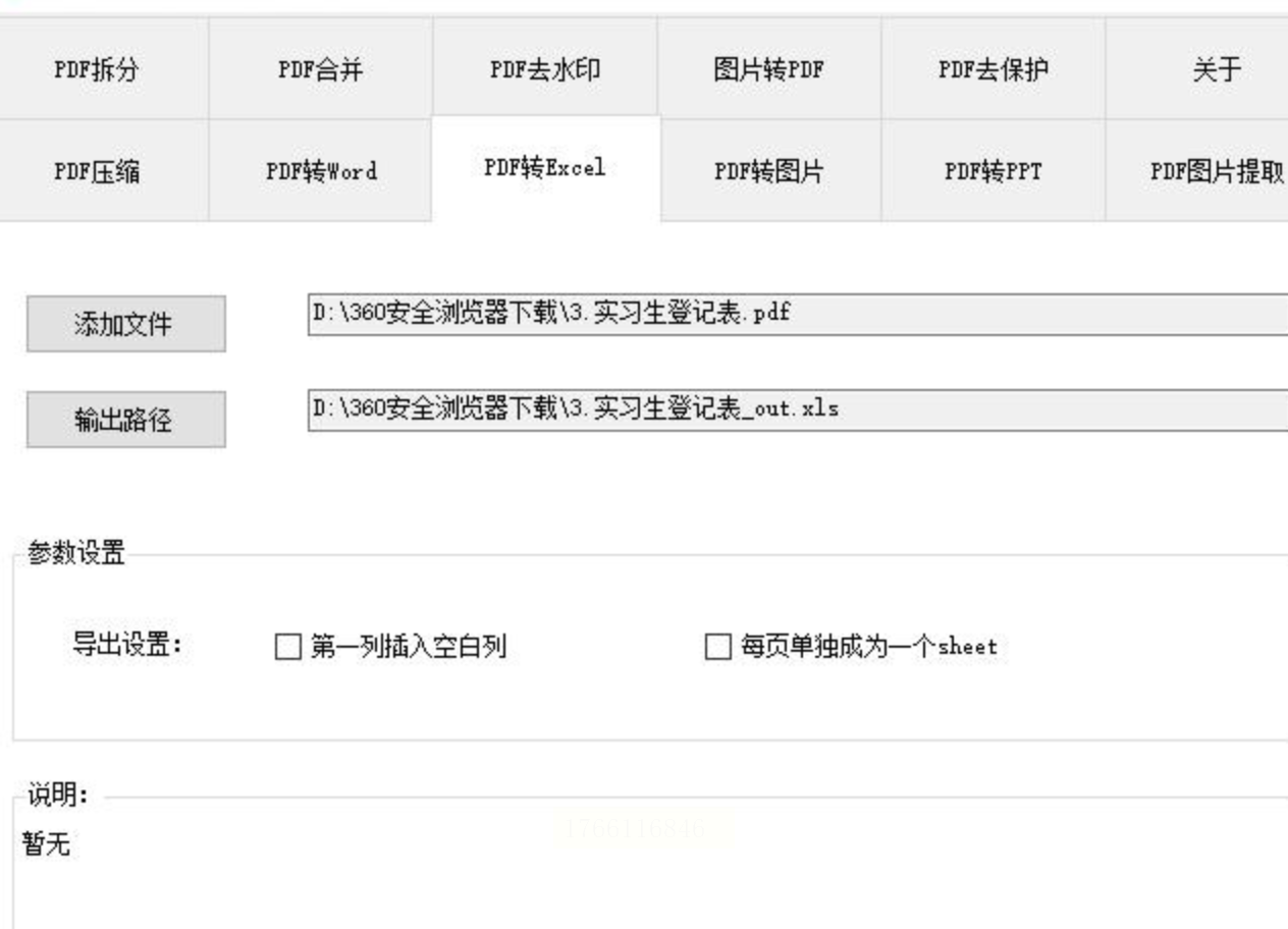 4. 设置输出路径:默认是存桌面,想改的话点“浏览”选其他文件夹,比如“我的文档”或“桌面Excel文件夹”。