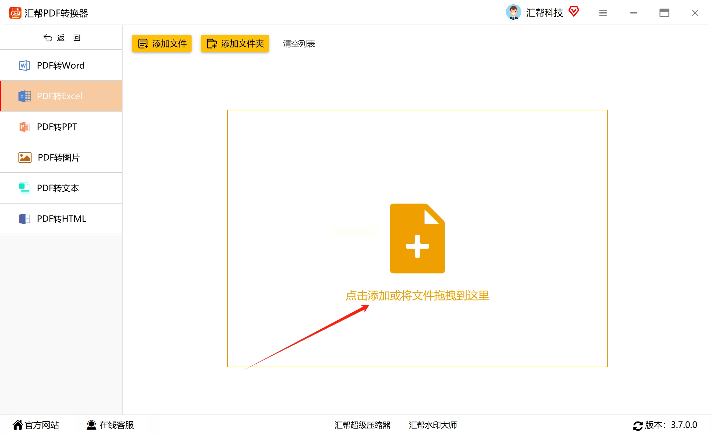 3. 添加PDF文件:直接把PDF文件拖到中间窗口,或者点击“添加文件”按钮。支持拖放多个文件,效率超高!