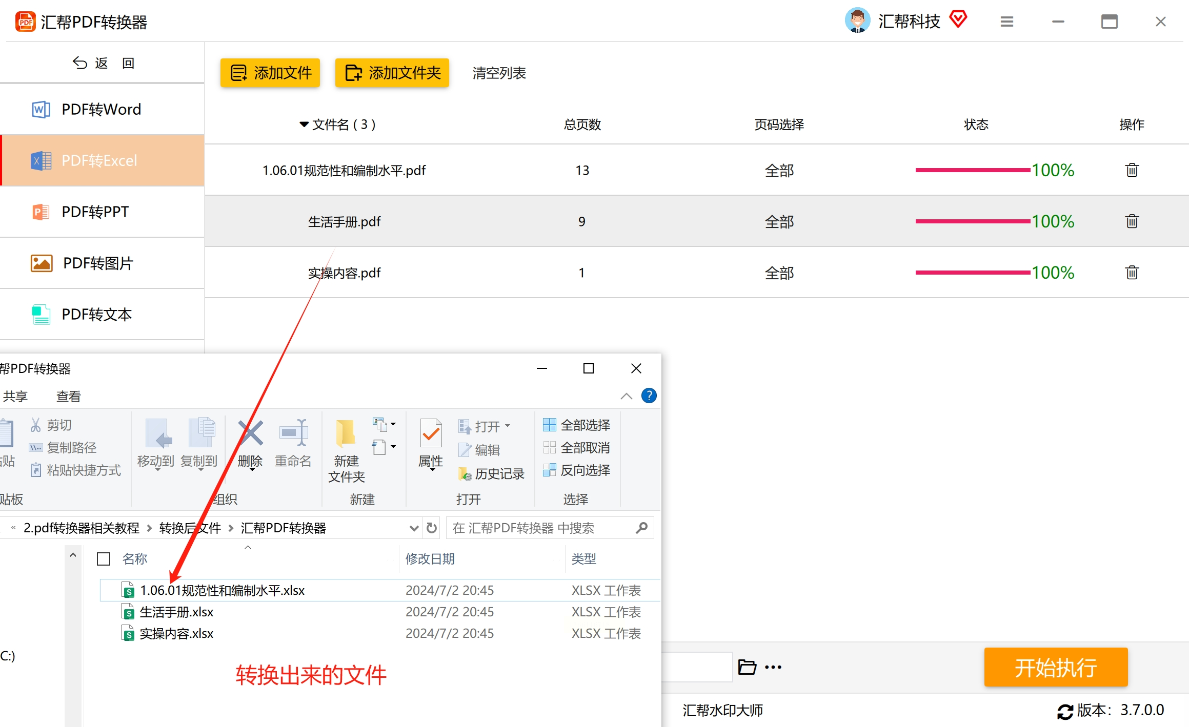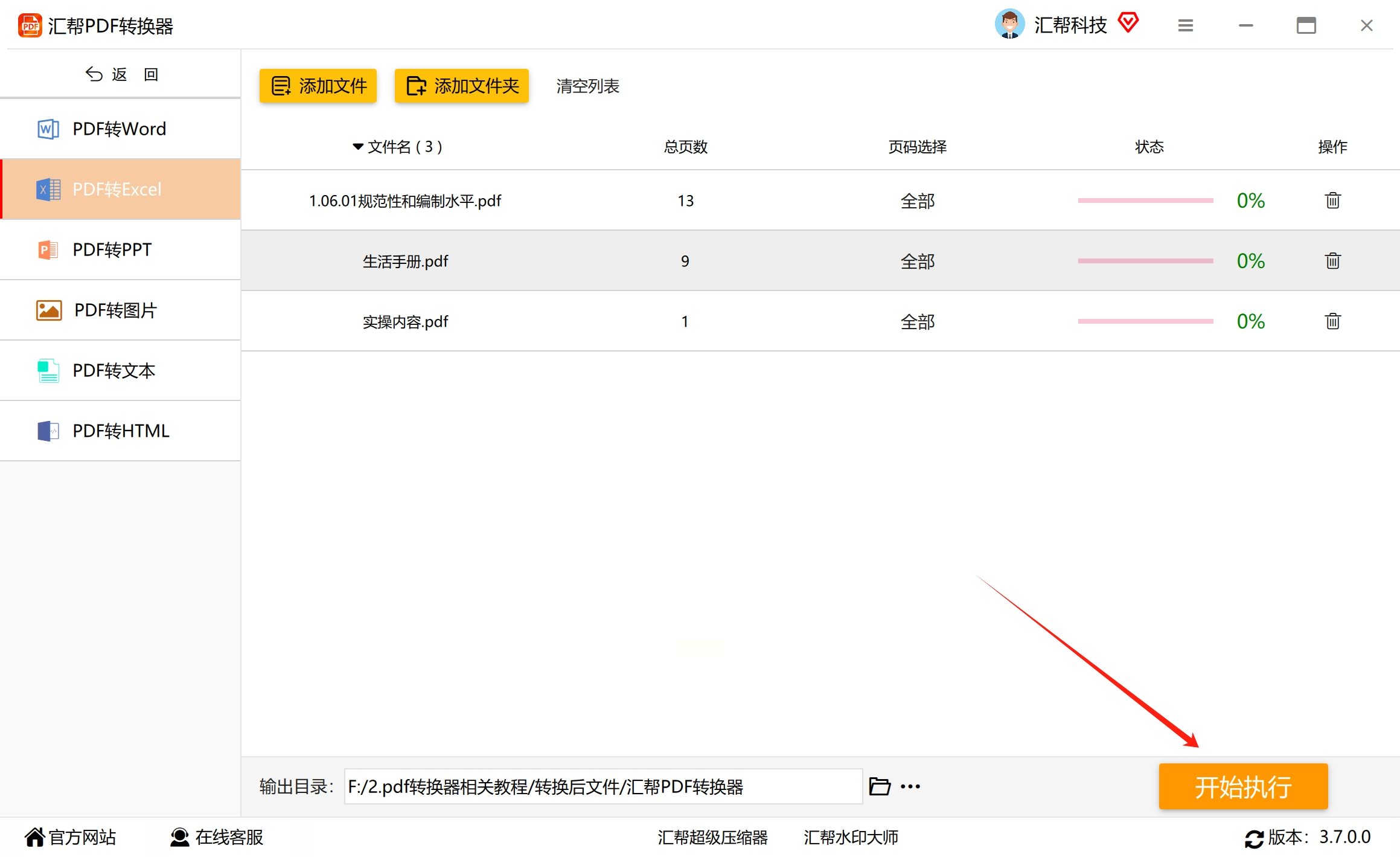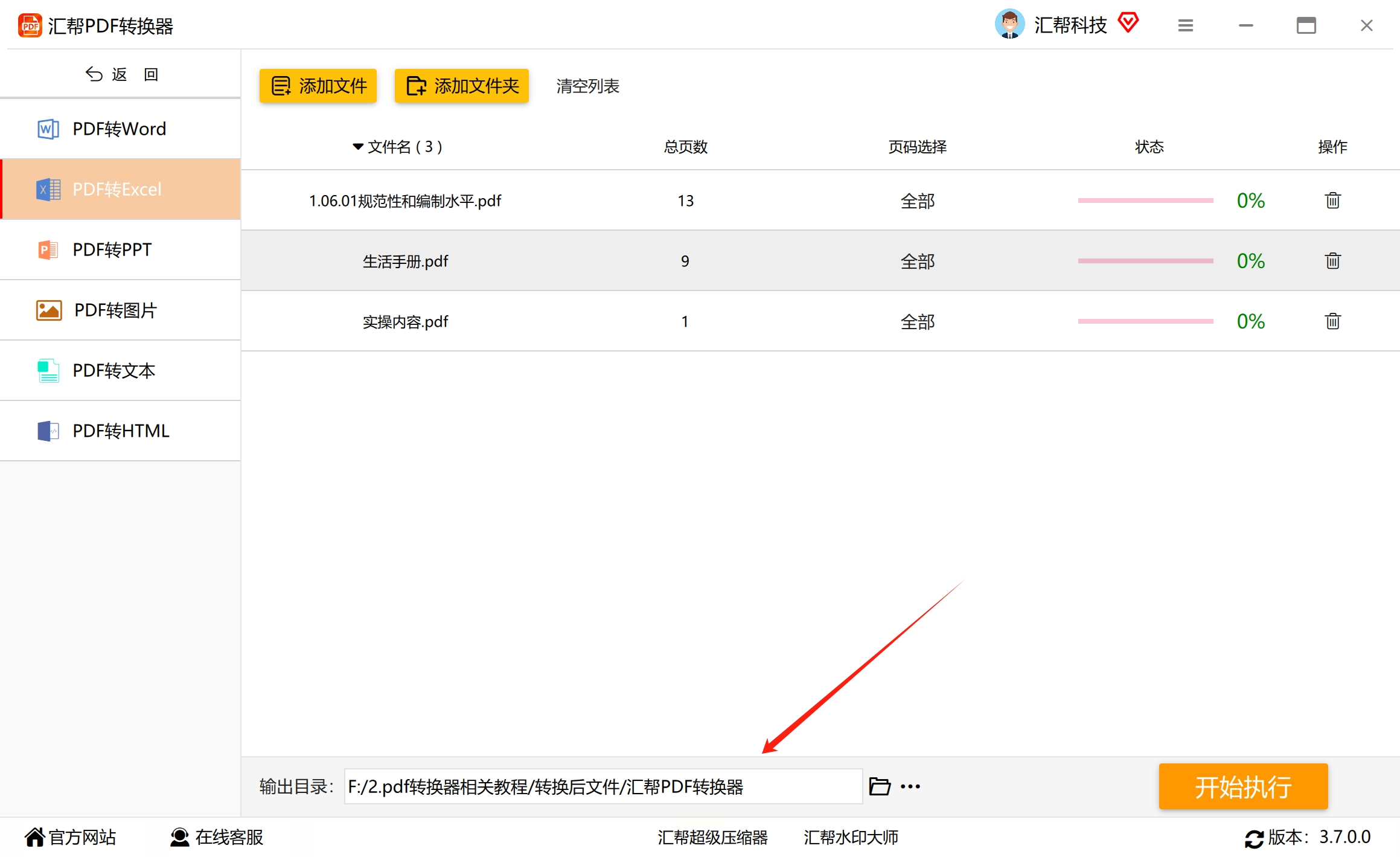 5. 开始转换:点击右下角【开始执行】,软件会自动识别PDF内容并转换。进度条会显示转换状态,完成后状态栏会提示“转换成功”。