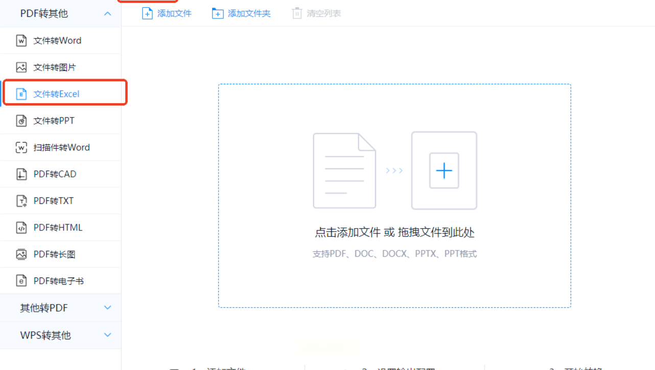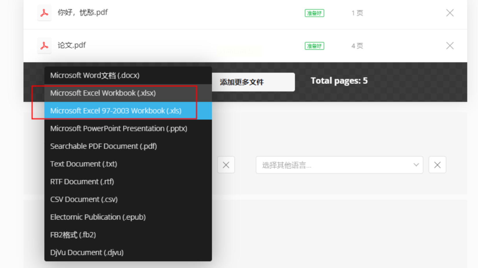 3. 添加文件:点击【添加文件】按钮,选择需要转换的PDF文件(支持单个或多个)。