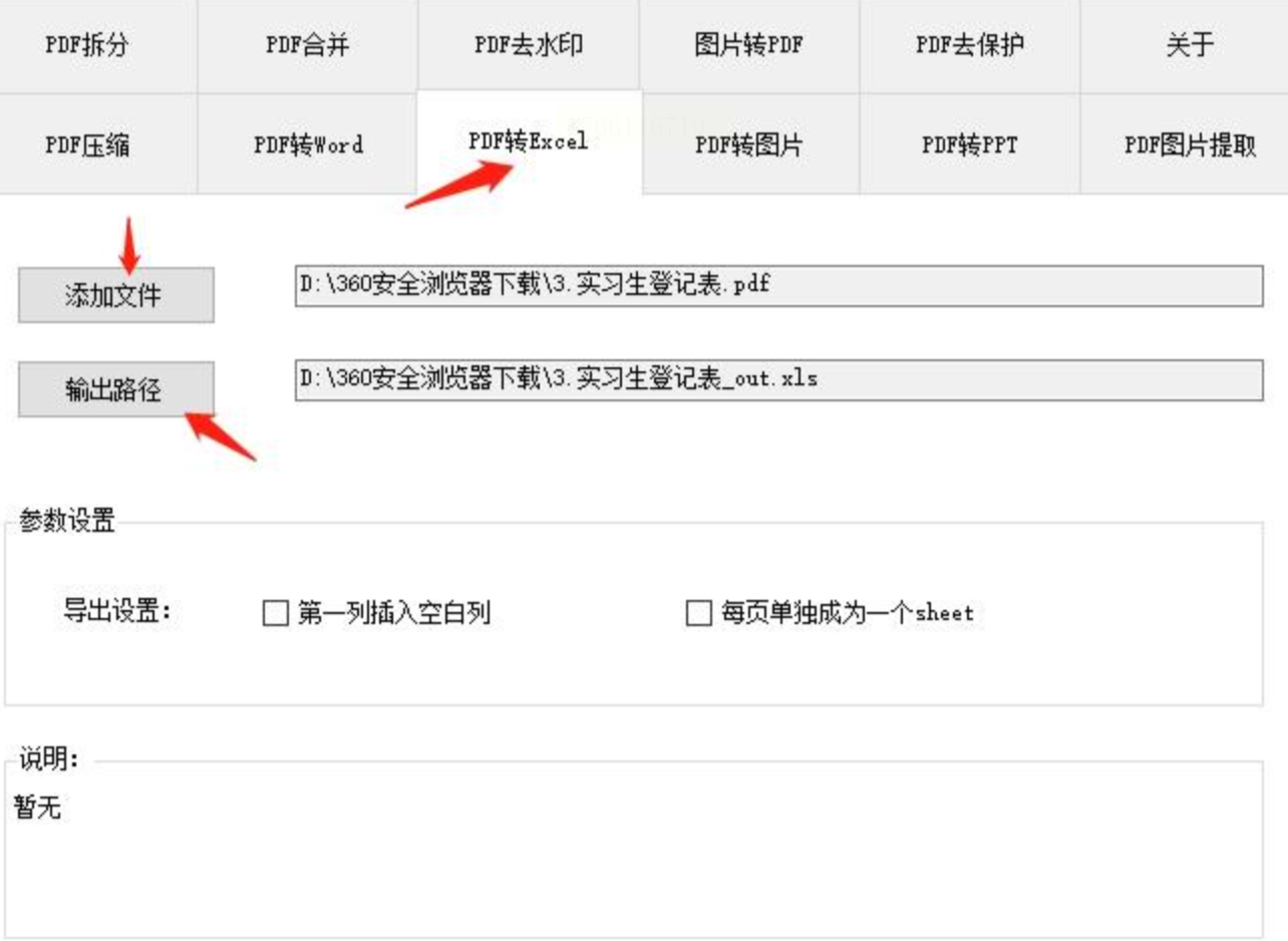 3. 设置参数:选择输出格式为Excel(XLS或XLSX),语言选“中文”(识别更准确)。