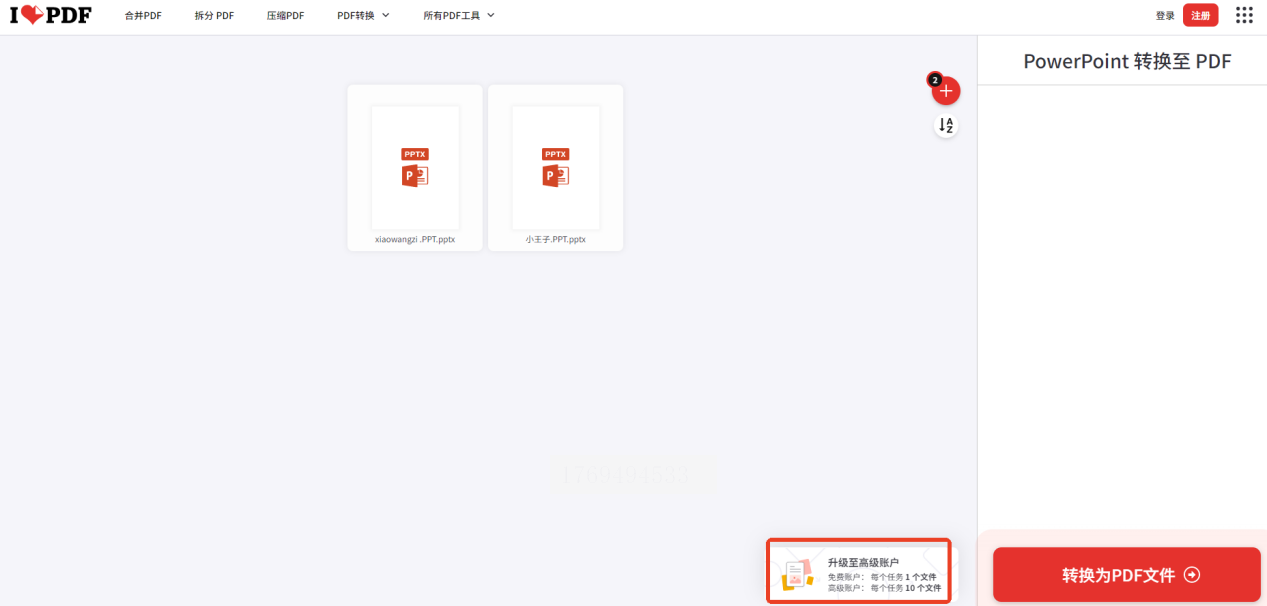 如果不想下载软件,也可以用在线平台ILovePDF。打开网站后,找到“PowerPoint转换至PDF”选项,上传文件,免费版每次只能处理1个文件,要是你有多个文件,得一个个来或者升级账户。转换完可以直接下载,还能分享给别人,但要注意网络稳定,不然容易出错。