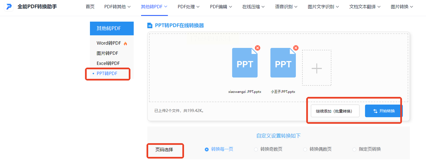 还有一个在线平台叫全能PDF转换助手,功能挺多的,除了PPT转PDF,还能处理其他格式。它不用注册登录,直接点“PPT转PDF”,上传文件,选页码范围,点“开始转换”就行。不过免费版单次转换文件有限,要是经常用还是得考虑付费版本。