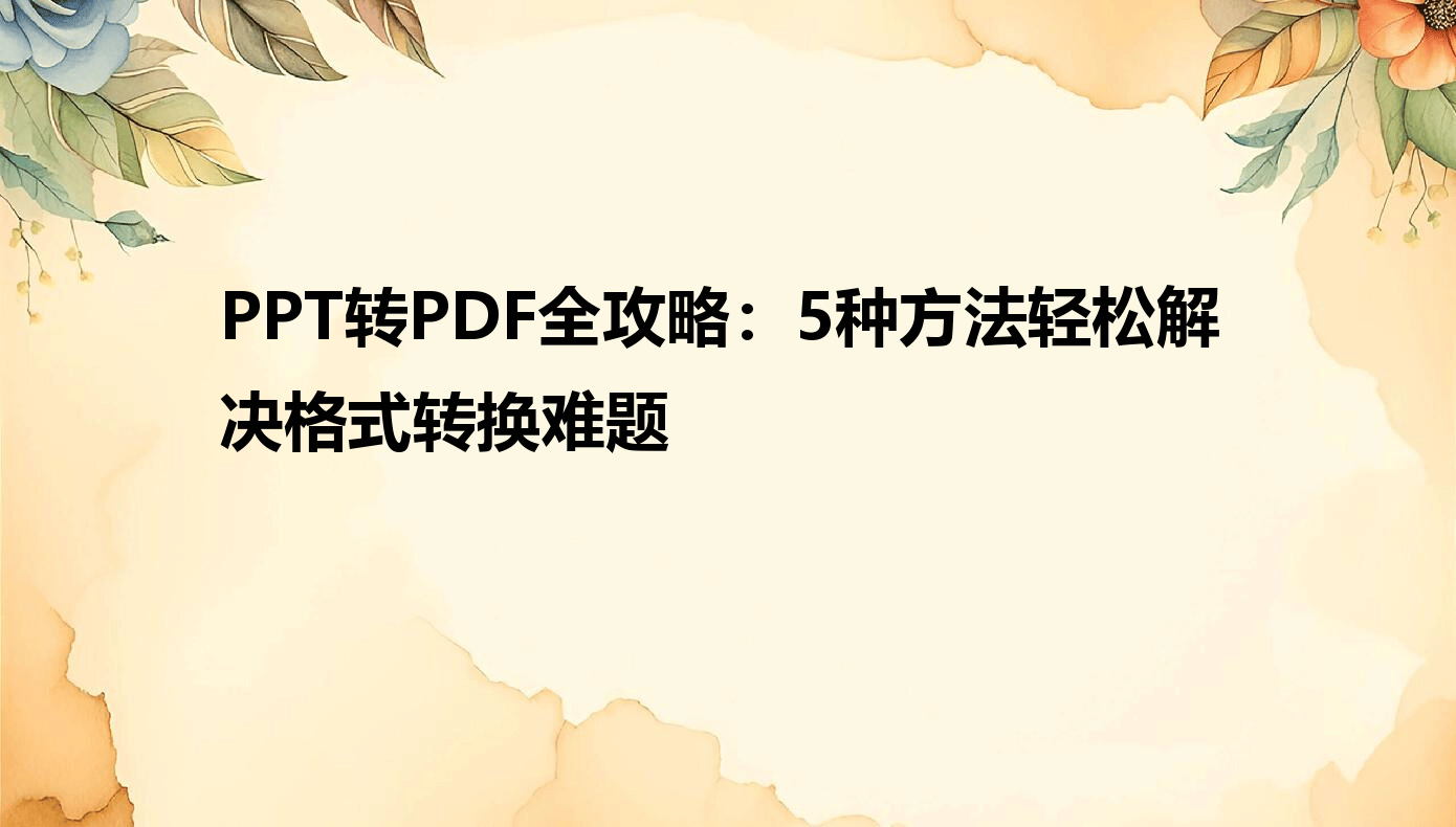 现在办公和学习中,把PPT转成PDF是常有的事。不管是要分享文件、打印还是确保格式不跑样,转换格式都是必备技能。但很多人转换时总觉得麻烦,要么格式不对,要么文件找不到,最后急得满头汗。别担心,今天就给大家分享几个简单又好用的转换方法,让你再也不用为转换格式发愁。