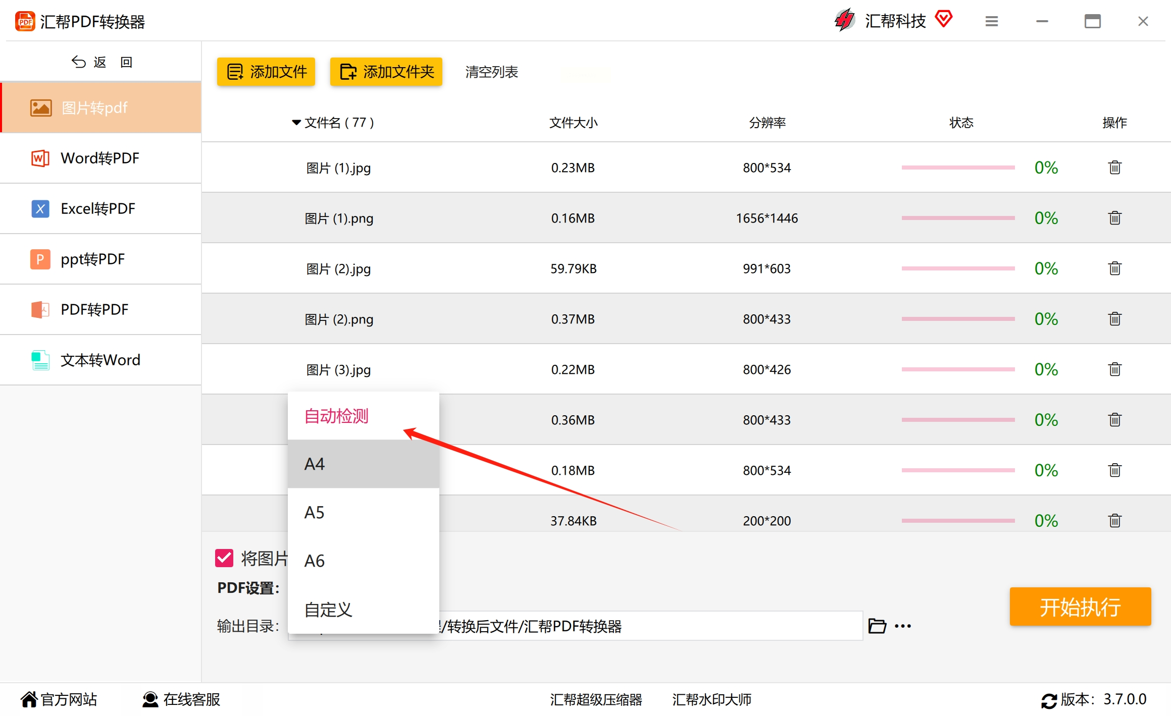 点击界面中的“添加文件”或“添加图片”按钮,从电脑文件夹中选择需要转换为PDF的图片。该软件支持一次性添加多张图片,并允许拖拽文件至列表区域。您可以在此处调整图片的排列顺序,确保最终PDF中的页面顺序符合预期。