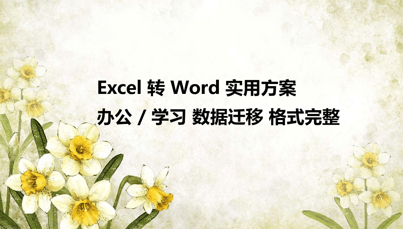 在办公场景中,Excel表格与Word文档的格式差异常常让数据转换变得狼狈不堪。当你需要把Excel中的财务报表、统计数据或者项目计划整理成Word文档时,直接复制粘贴往往会导致表格错位、公式变形甚至图片丢失,既浪费时间又影响工作效率。别担心,本文将详细介绍5种安全可靠的Excel转Word方法,让数据转换过程既简单又精准,让你的办公效率瞬间提升。