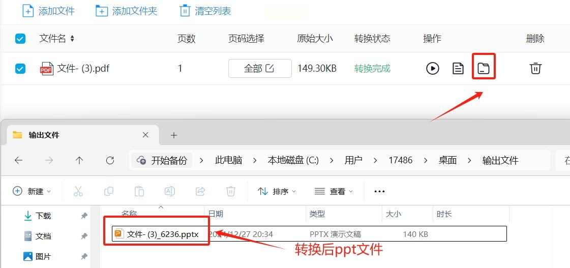 转换完成的PPT会自动打上绿色对勾,点击旁边的文件夹小图标,系统会像贴心管家一样把成果直接捧到你面前。