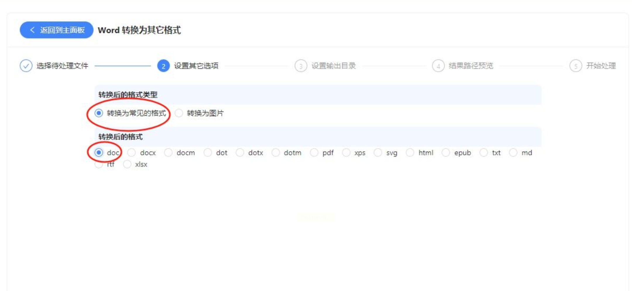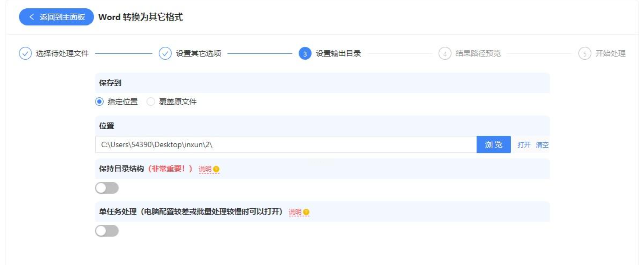 在页面底部的「导出格式」里选「DOC」,然后点击「浏览」选择输出文件夹。这里要注意:一定要选一个和原文件不一样的文件夹,避免覆盖原文件(原文件会被保留,新文件单独生成)。