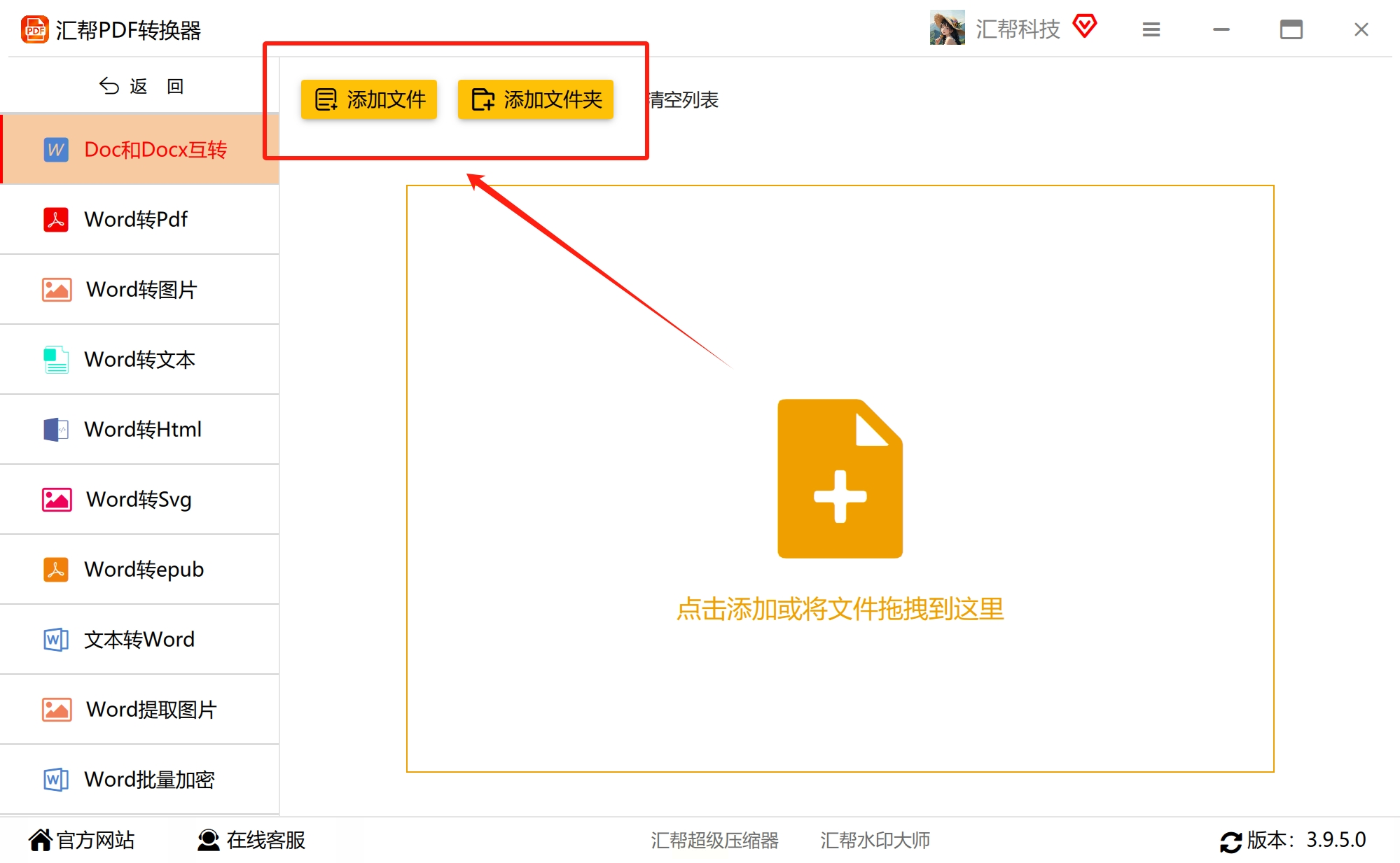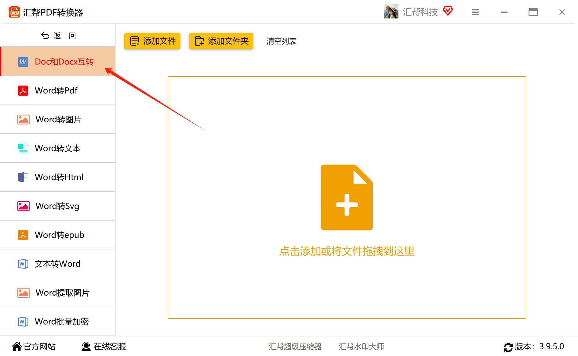 点击左侧的「DOC和DOCX互转」,界面会显示支持的功能:转换为DOC、转换为DOCX,还有批量转换选项。
