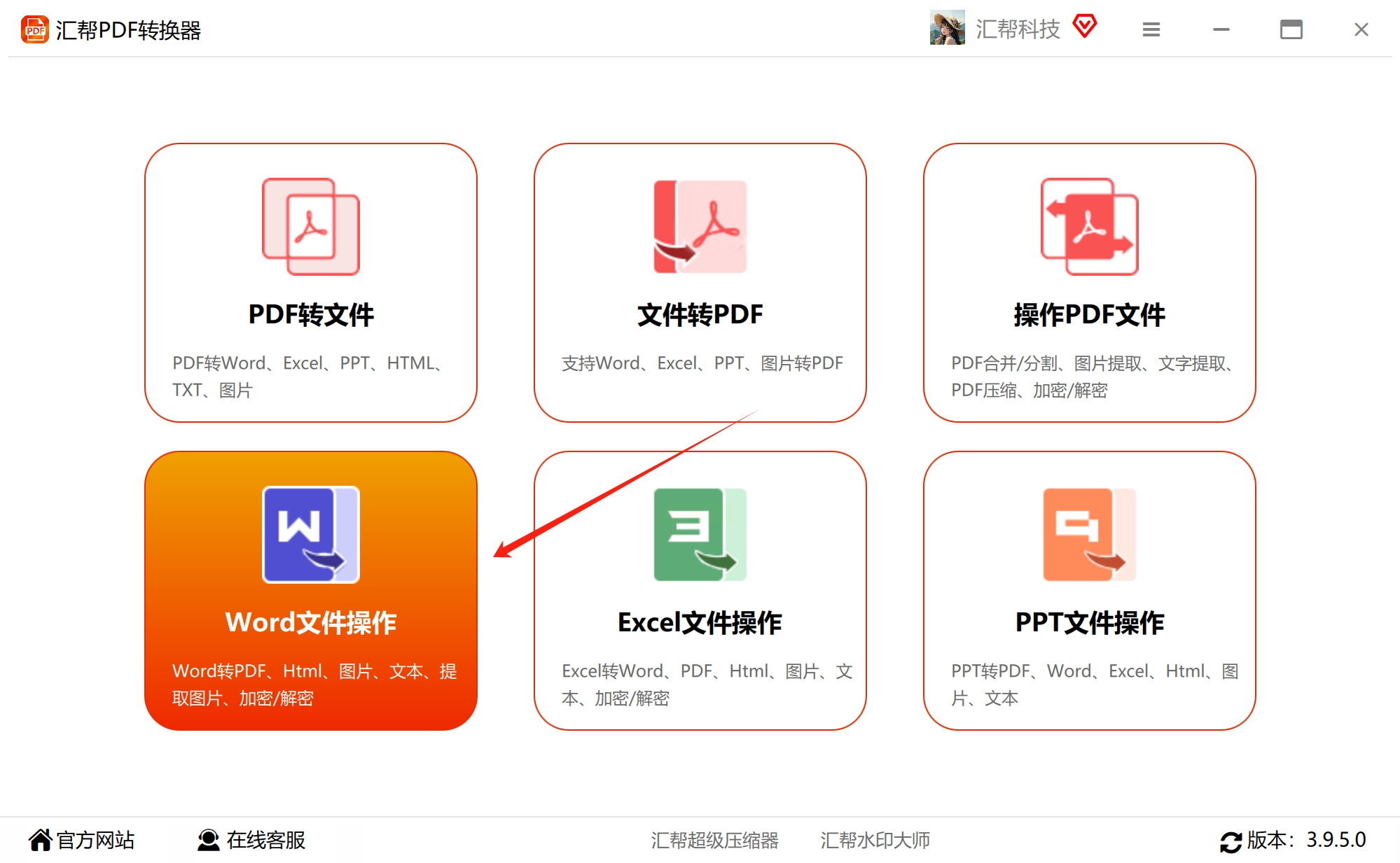 打开软件后,在首页的功能列表里找到「Word文件操作」,点击进入后就能看到「DOC和DOCX互转」选项。