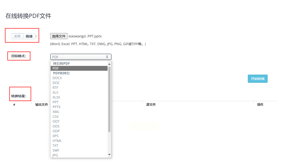 2. 选择“PPT转PDF”功能,然后上传本地文件或输入在线文件的URL。