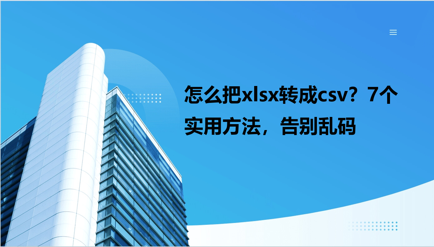 解决思路:选对工具是关键!接下来这7个方法,按场景分类,看完就能秒懂用哪个,轻松搞定xlsx转成csv!