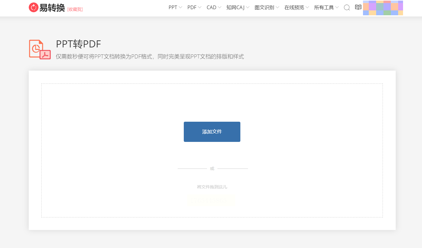 1. 打开易转换官网(无需注册登录),点击首页的“添加文件”按钮。