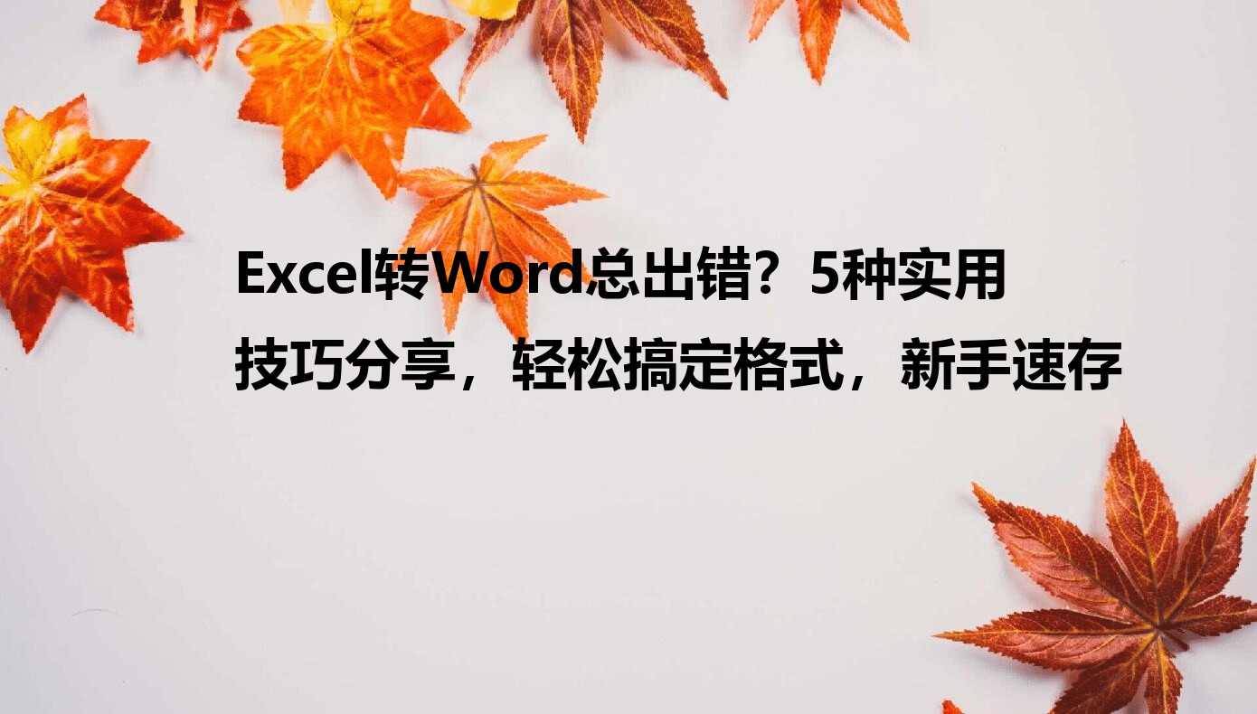 最近好多同事问我Excel表格怎么转Word才不丢格式,试了好几种方法要么数据错位要么排版乱成一团。其实掌握对工具和技巧,这种转换完全可以像复制粘贴一样简单!今天我把自己常用的5个方法整理出来,从基础操作到进阶技巧全都有,新手也能一看就会,帮你把Excel里的数据完美搬到Word里,不用再熬夜改格式啦~