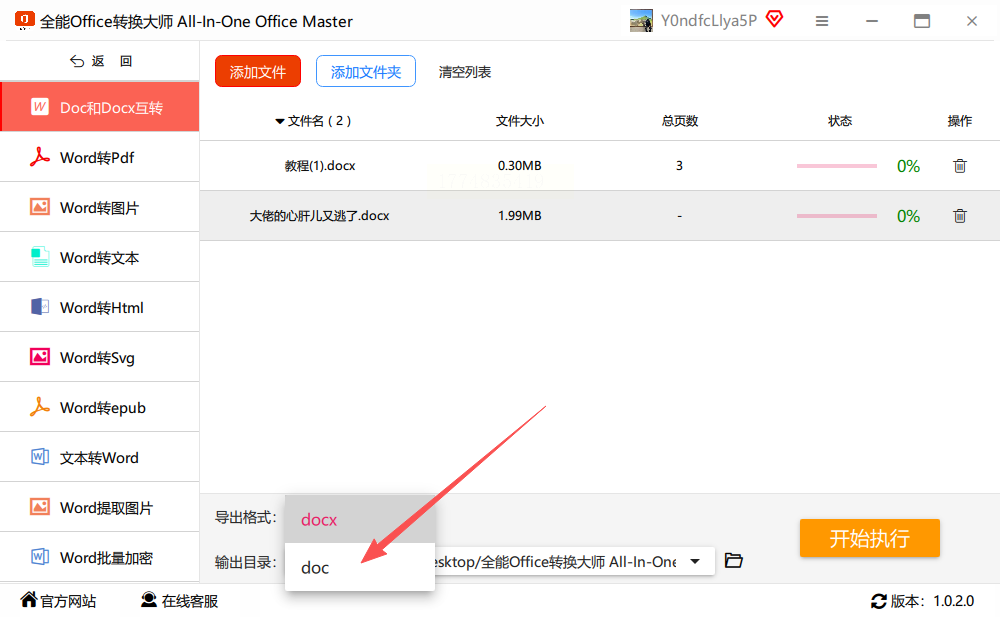 2. 选择功能:在主界面找到“Word文件操作”模块,点击进入,选择“docx转doc”方向,精准匹配我们的转换需求。
