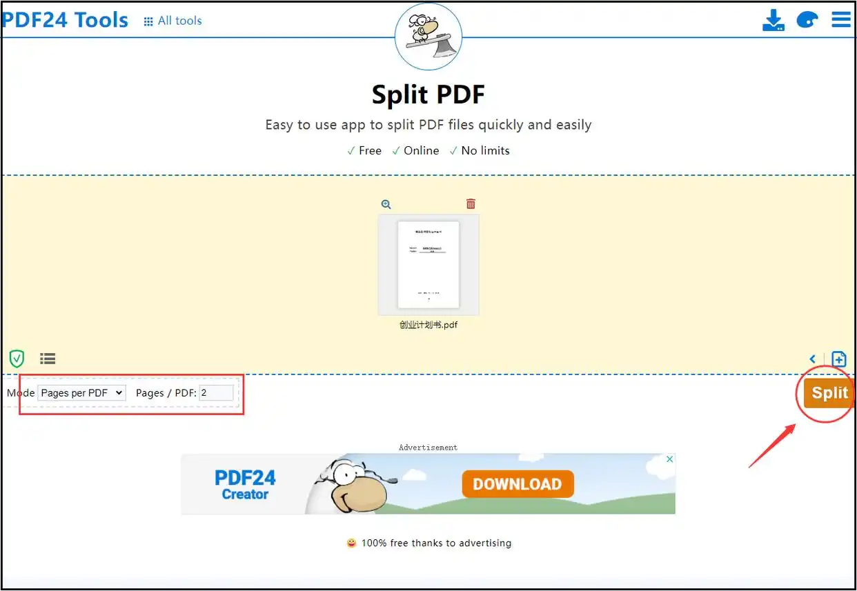 点击“Split”按钮开始处理,完成后会自动生成下载链接,点击“Download”即可将拆分后的PDF文件保存到本地。