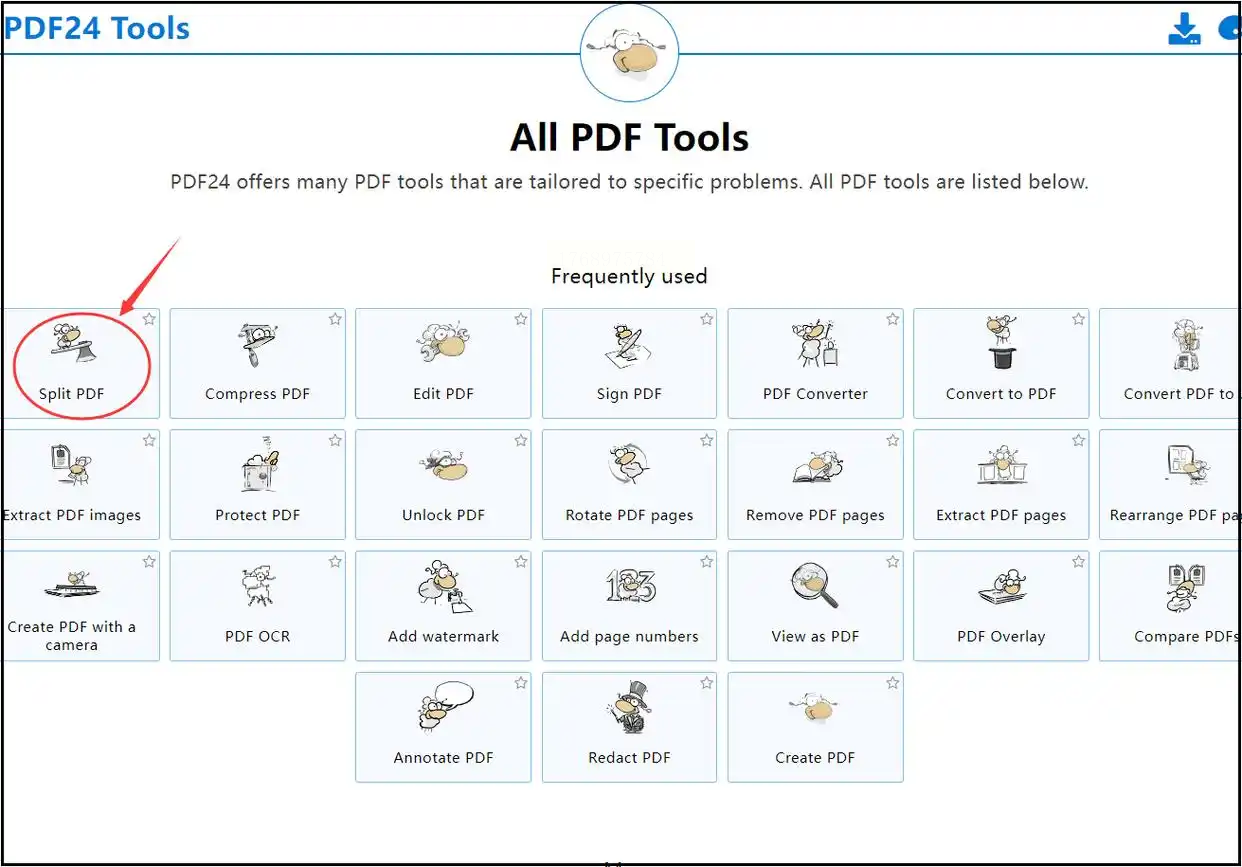 打开浏览器,输入“PDF24 Tools”官网地址(无需注册登录),在功能列表中找到“Split PDF”工具。