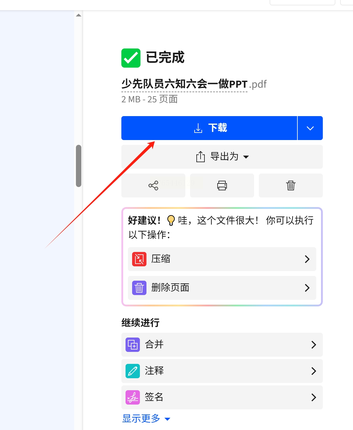 6. 转换完成后,页面会显示下载链接,点击即可将PDF保存到本地
