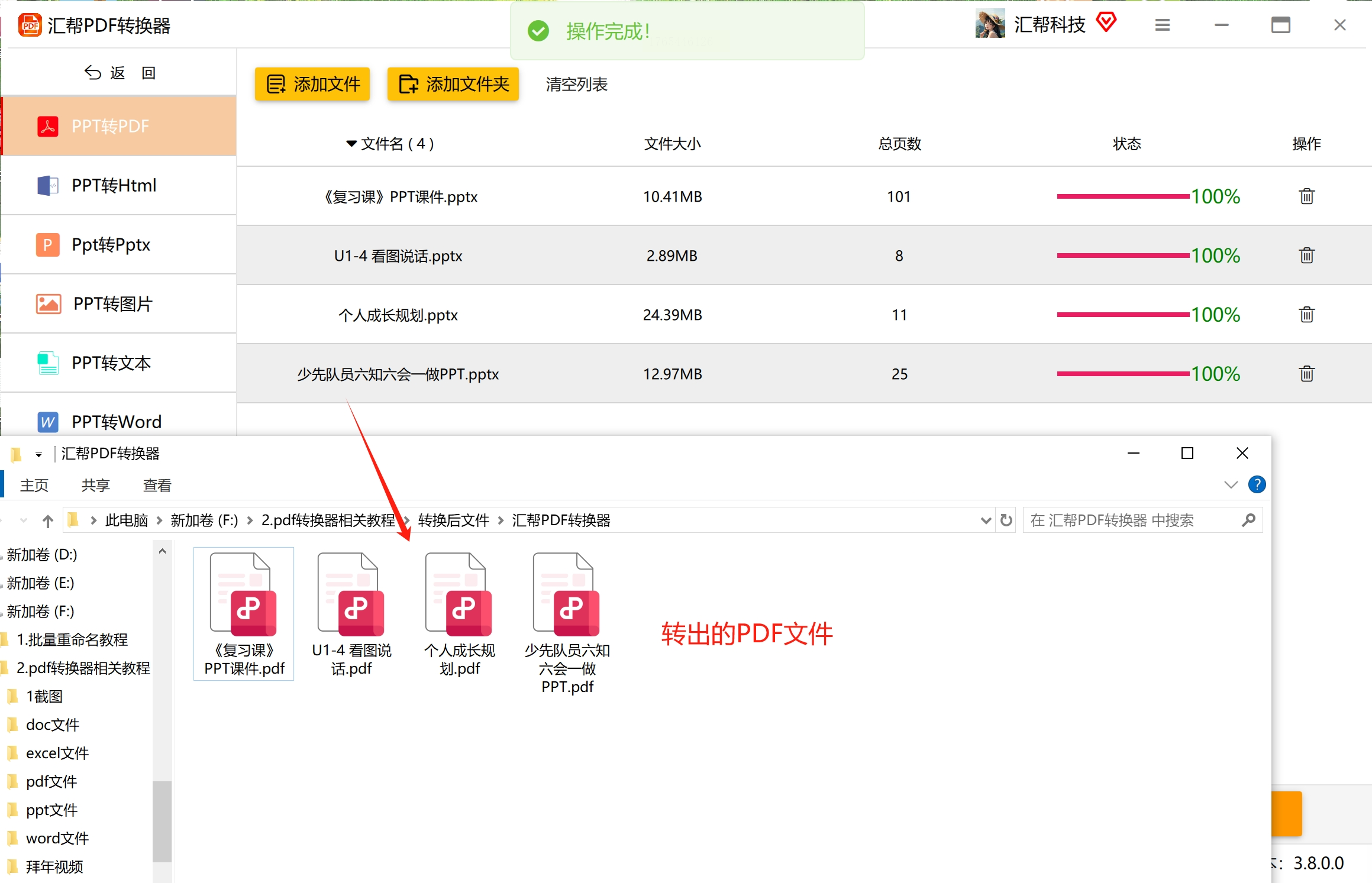8. 转换过程中可以查看进度条,转换完成后软件通常会提示并自动打开输出文件夹