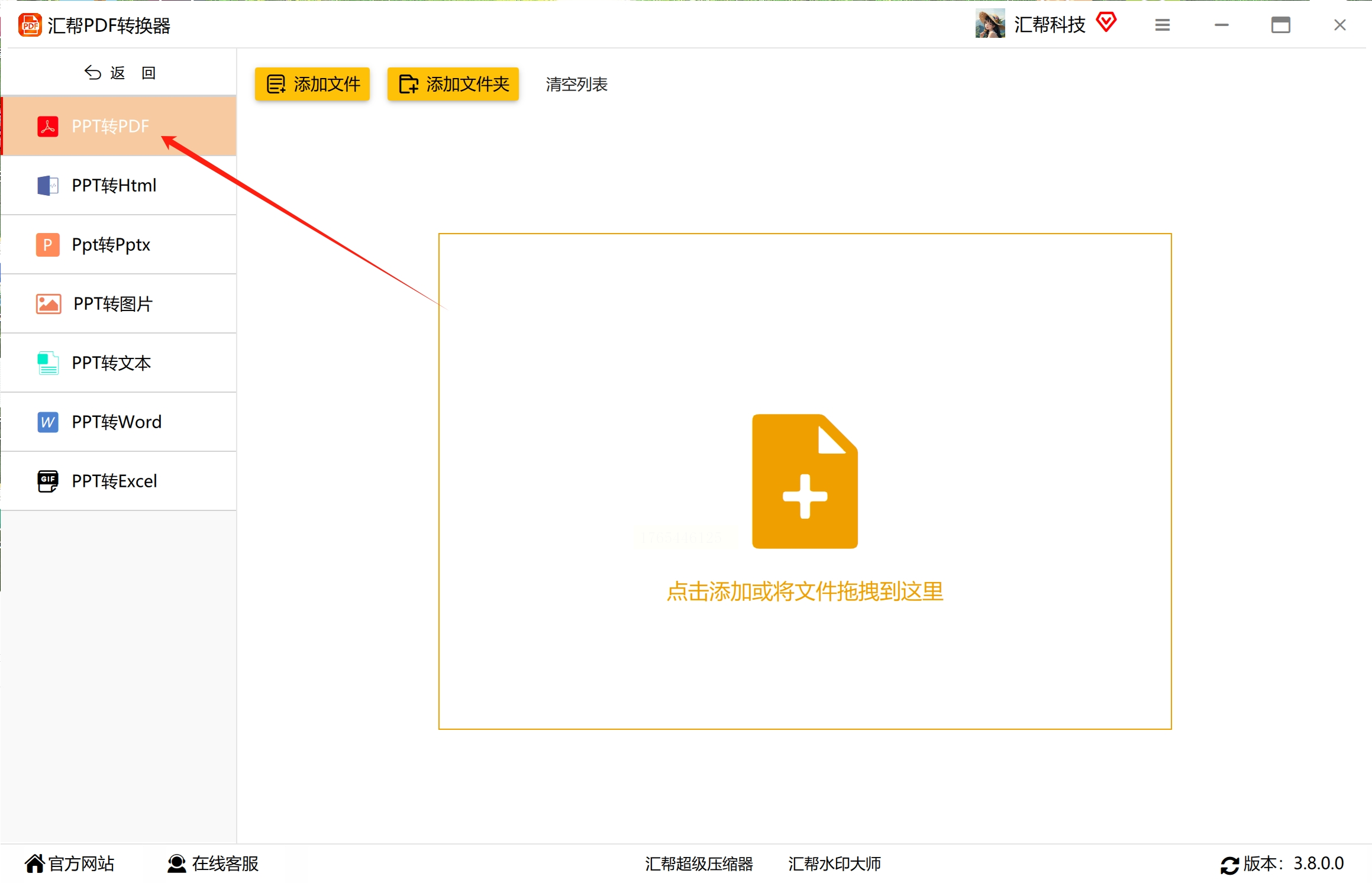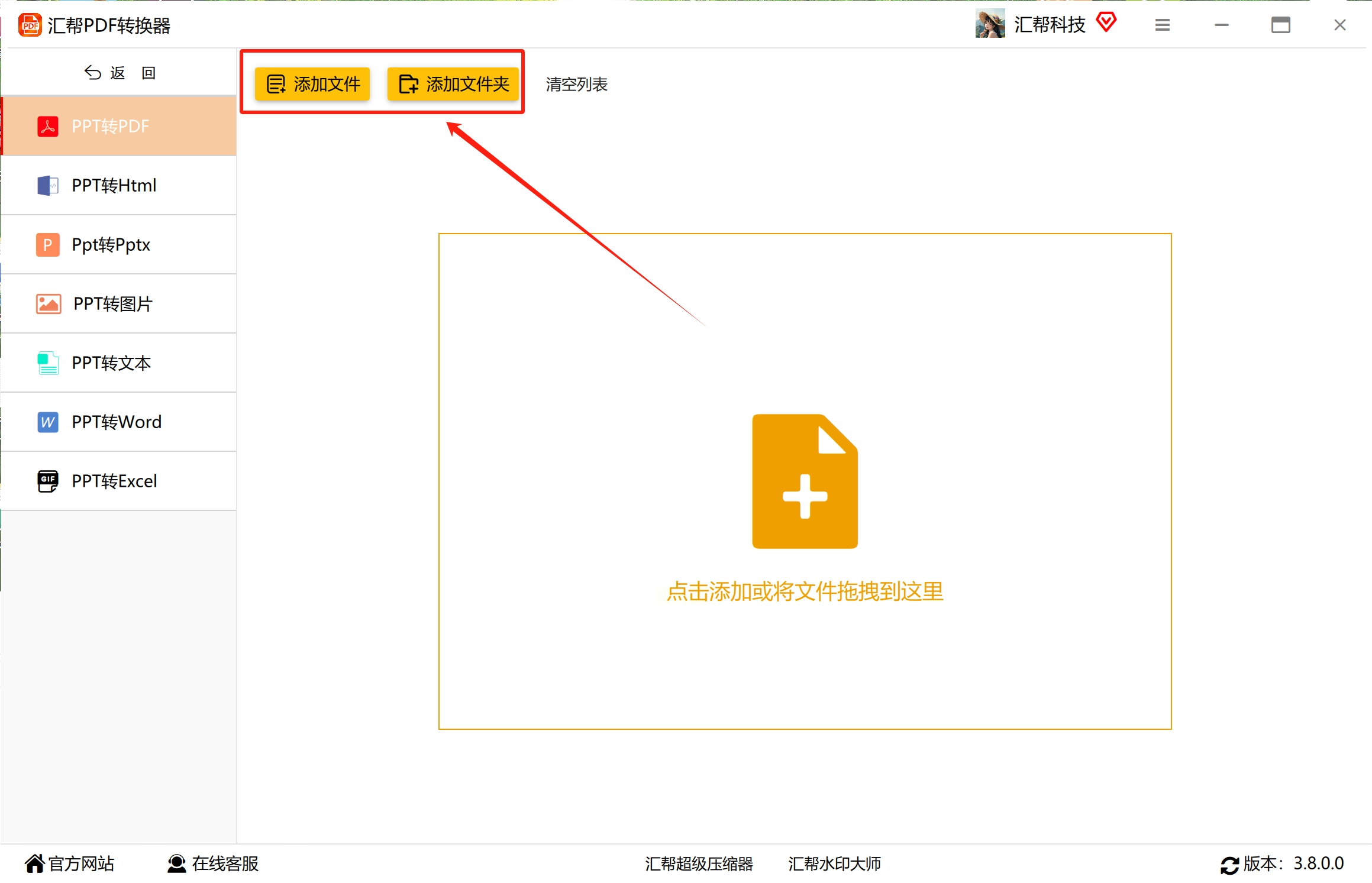 3. 进入功能详情页面后,点击“添加文件”或“批量添加”按钮,选择需要转换的PPT文档