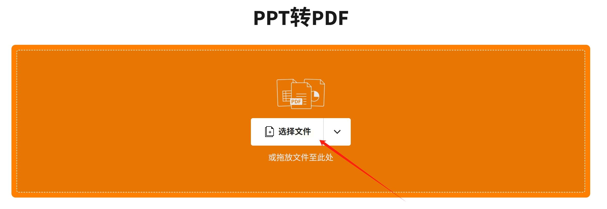 3. 进入转换页面后,点击“选择文件”按钮上传PPT文档,也可以直接将文件拖拽到指定区域