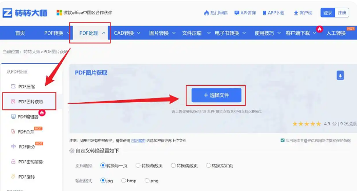 如果你不想在电脑上安装任何软件,偶尔有提取需求,那么在线转换工具就很合适。转转大师是一个例子,这类工具的好处是打开网页就能用,比较方便。但需要注意的是,你需要将PDF文件上传到它的服务器进行处理,所以请确保文件不涉及个人隐私或商业机密。