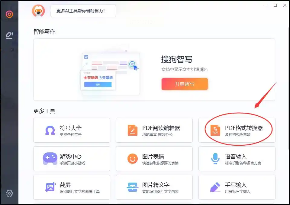 2. 在工具箱菜单中找到"PDF格式转换器"选项并点击。