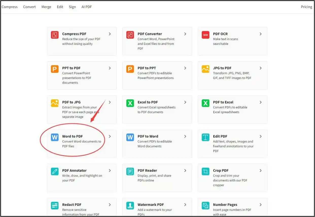 Smallpdf是一个功能全面的在线PDF处理平台,无需安装软件即可使用,临时将word文档变成pdf格式很方便。其Word转PDF功能操作便捷: