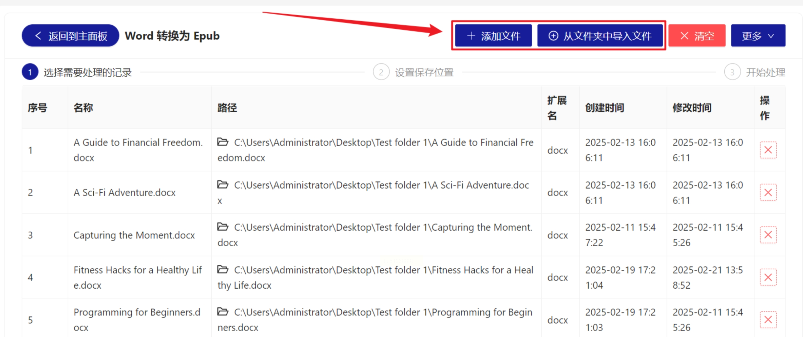 4. 通过拖拽方式添加文件,或者点击“添加文件”按钮选择要转换的Word文档