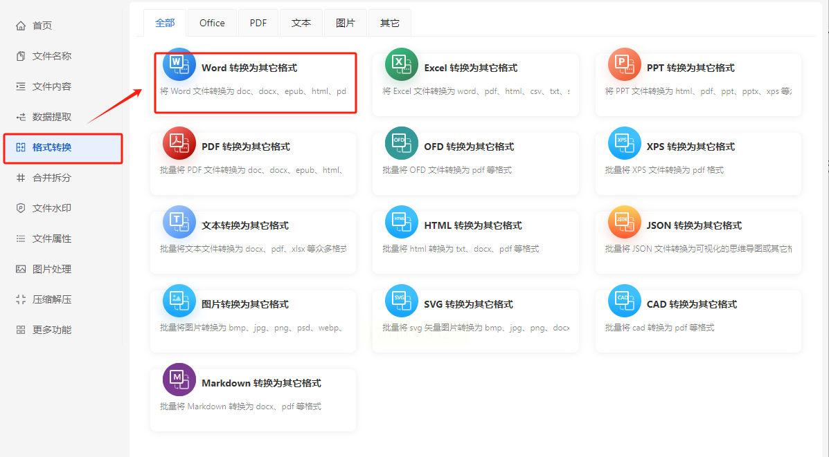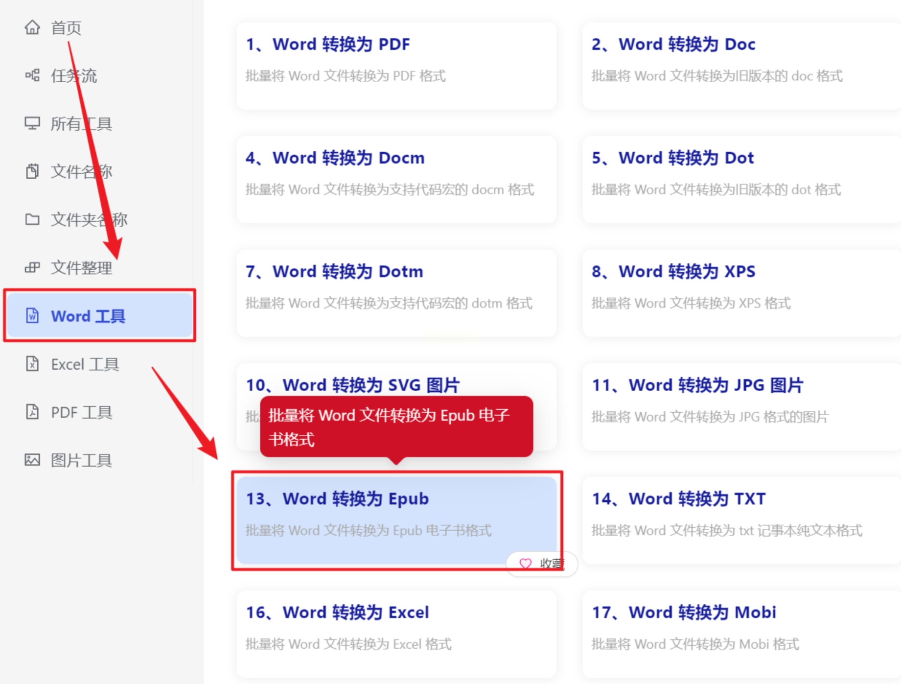 2. 点击进入后选择【Word 转换为 Epub】功能