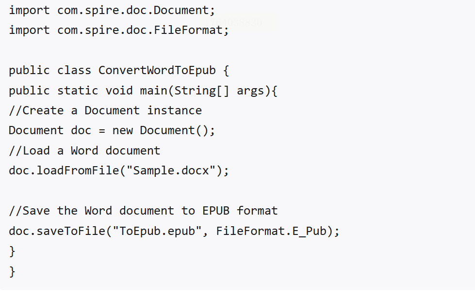 5. 调用saveToFile()方法将文档保存为EPUB格式