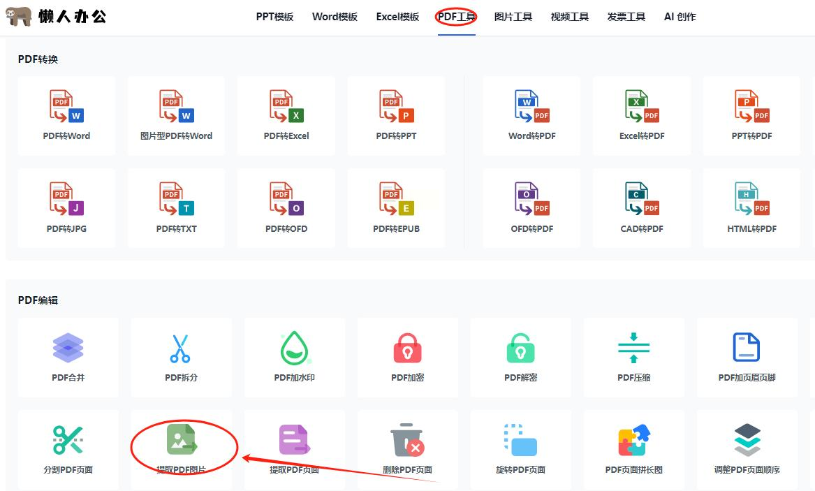 懒人办公是一个专注于PDF处理的在线平台,它提供了多种PDF工具,其中就包括提取图片功能。这个网站对免费用户有一定的处理额度,适合偶尔需要提取图片的用户。