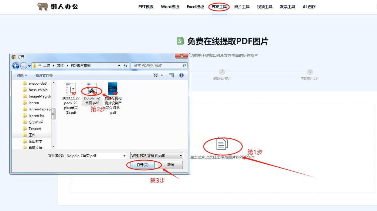 步骤三:点击上传按钮,选择需要提取图片的PDF文件。网站支持大多数常见的PDF格式。
