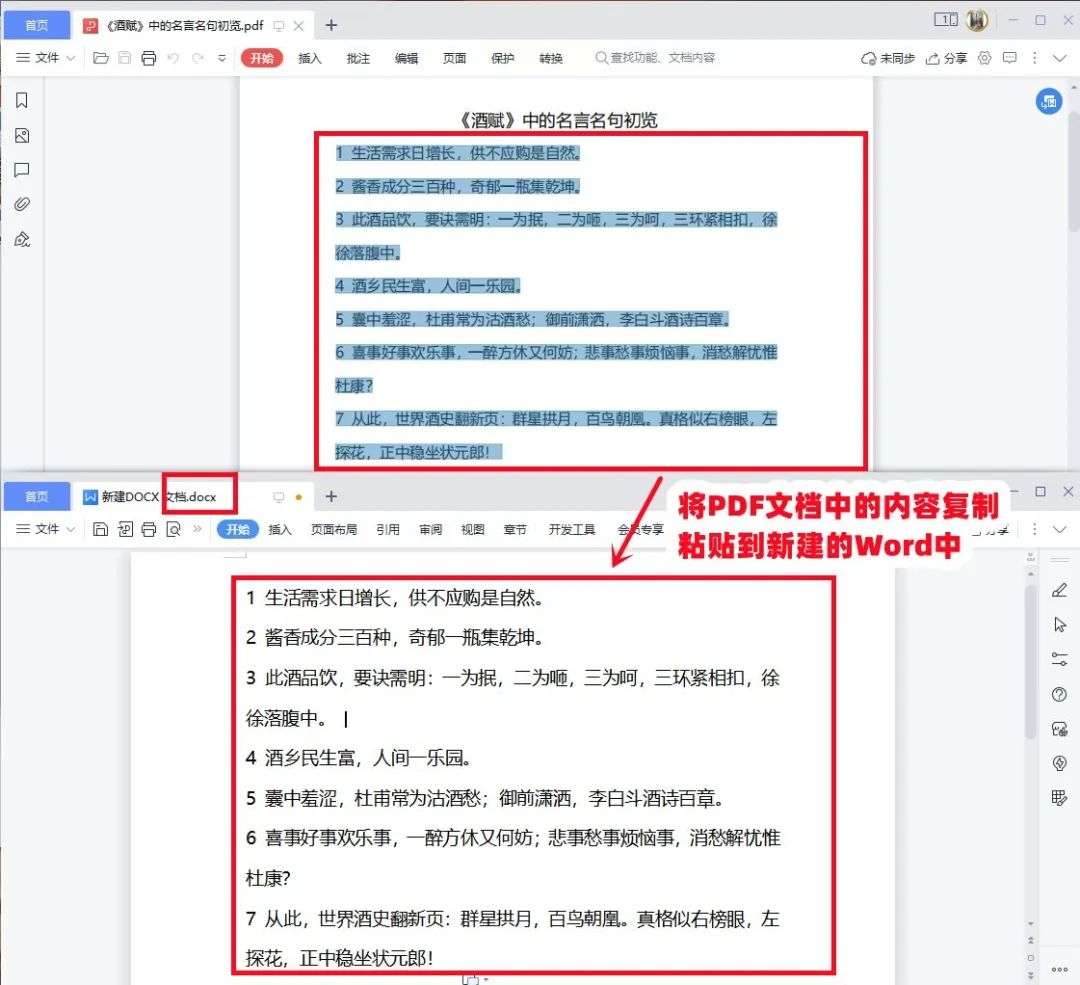 步骤一:打开PDF内容复制界面,选中全部内容并复制。