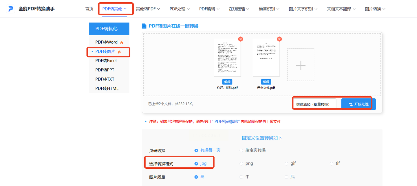 优势:转换速度快,支持多页PDF批量处理;输出质量可调,适合专业场景;界面直观,无需技术背景即可上手。