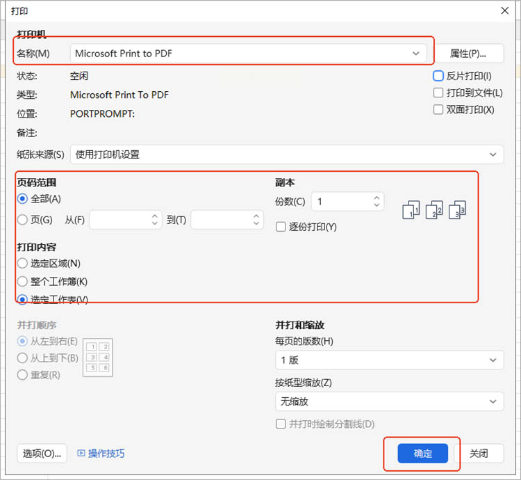 2. 选择打印机:在“打印机”列表里找到“Microsoft Print to PDF”(这是系统自带的虚拟打印机,专门用来生成PDF),选中它。