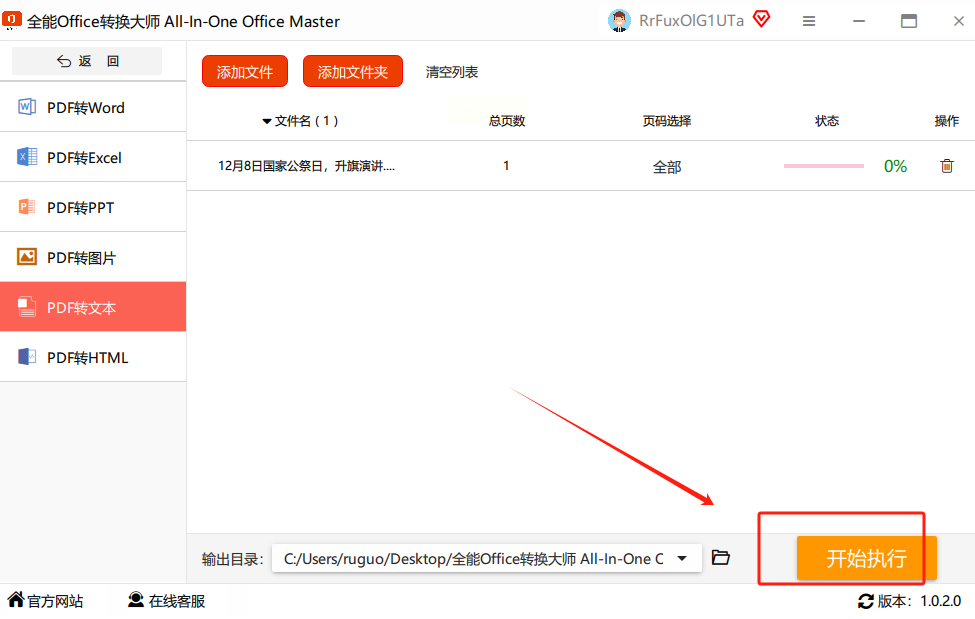 4. 开始转换,等结果:点右下角的“开始执行”,软件就会开始批量转换,你可以去倒杯水,或者做个简单的拉伸~转换完成后,软件会提示“转换成功”,你直接在输出目录里找到生成的TXT文件,直接打开就能用~