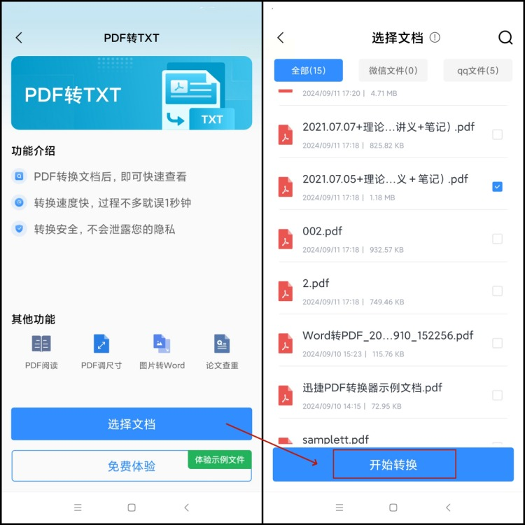 1. 打开APP,找功能:打开手机里的迅捷PDF转换器,主界面上找找“PDF转TXT”,这个功能就在最显眼的位置,点进去~