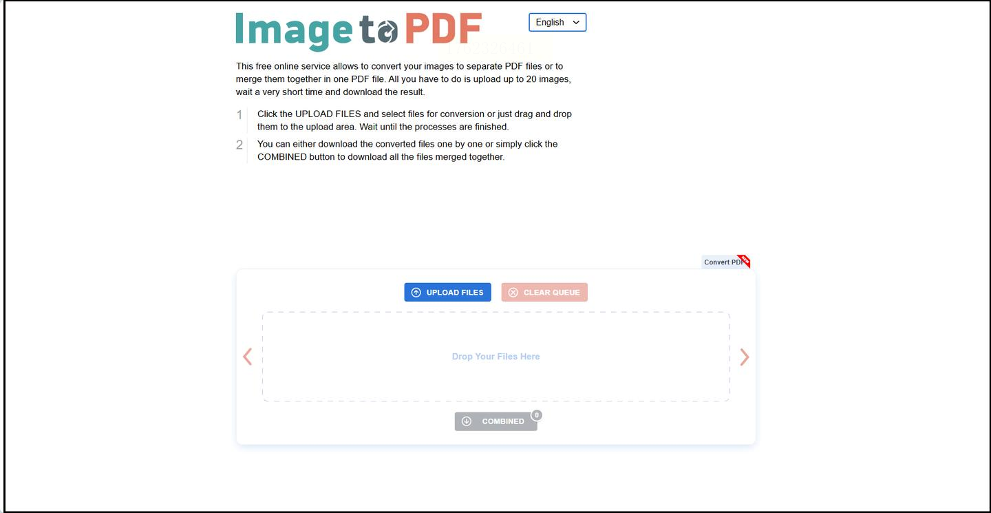 2. 点击“Select PDF files”上传图片,可批量添加;