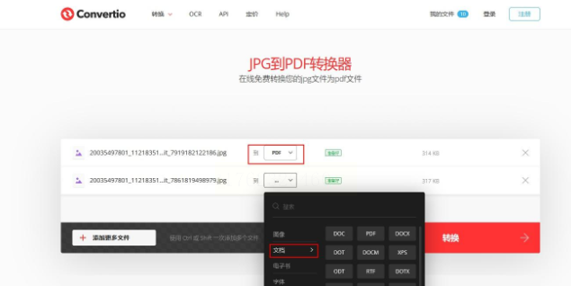 1. 打开Convertio官网,选择“图像”分类下的“PDF”格式;