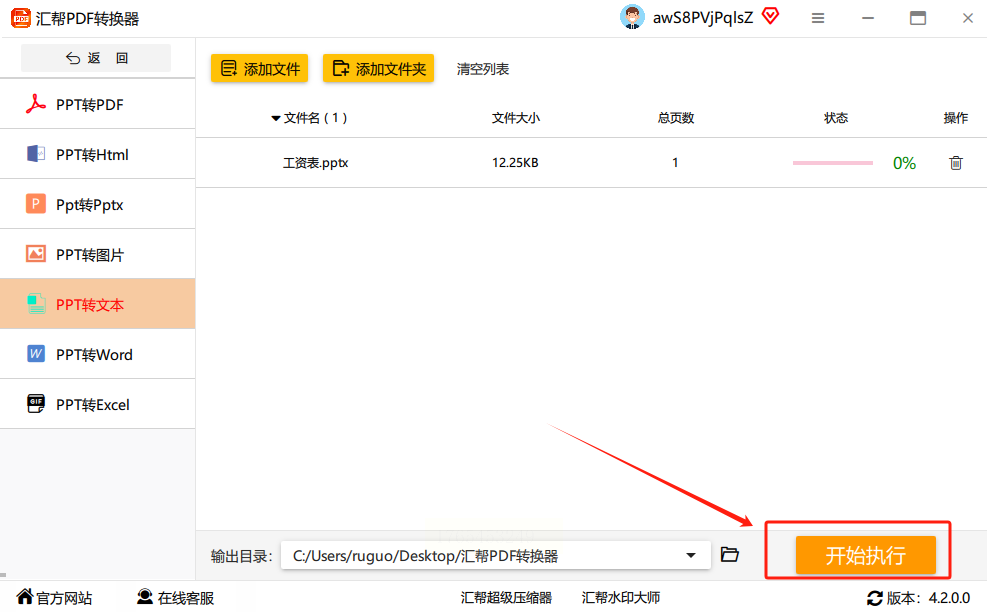 都设置好了,就点右下角那个“开始执行”按钮。你会看到软件界面中间显示转换进度,比如“正在转换第1页”“正在转换第3页”,等进度条走完,就说明成功啦!这时候你去刚才设置的输出目录里看,就能找到一个和原PPT同名的TXT文件,双击打开看看,里面的文字是不是都完整提取出来了?