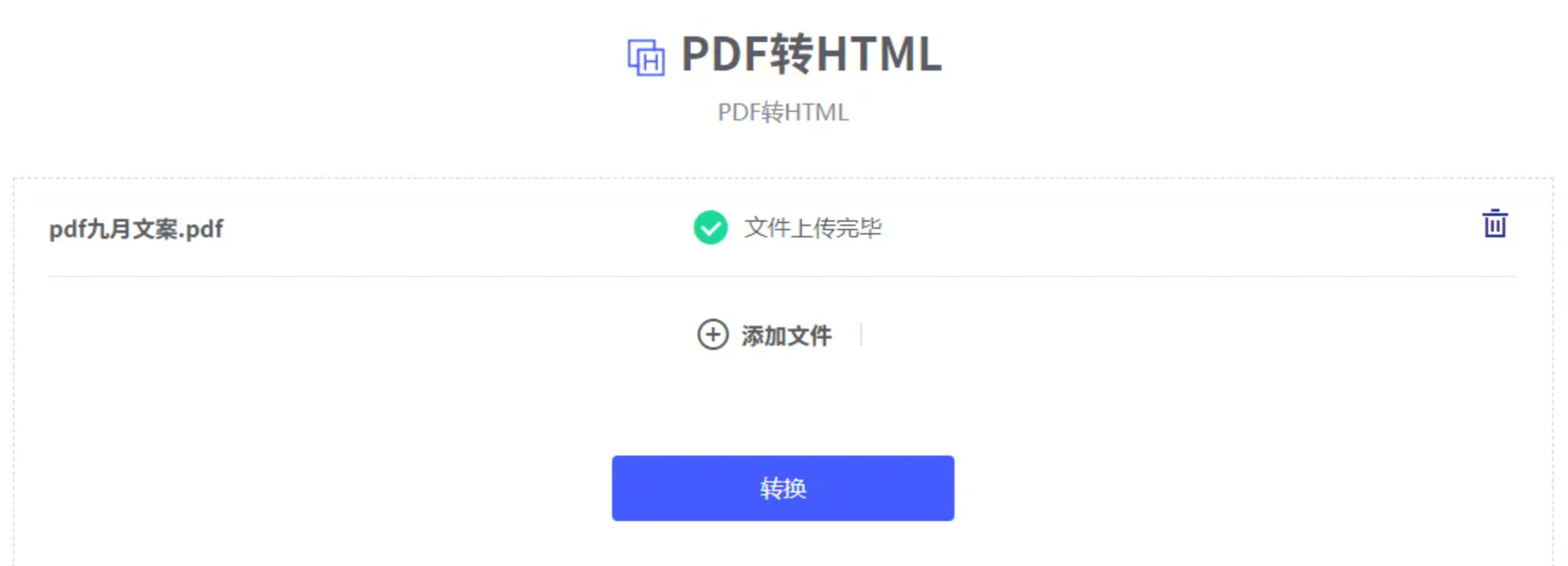文件上传完成后,页面会显示文件名和大小。确认无误后,点击“转换”或类似按钮,系统会自动处理。