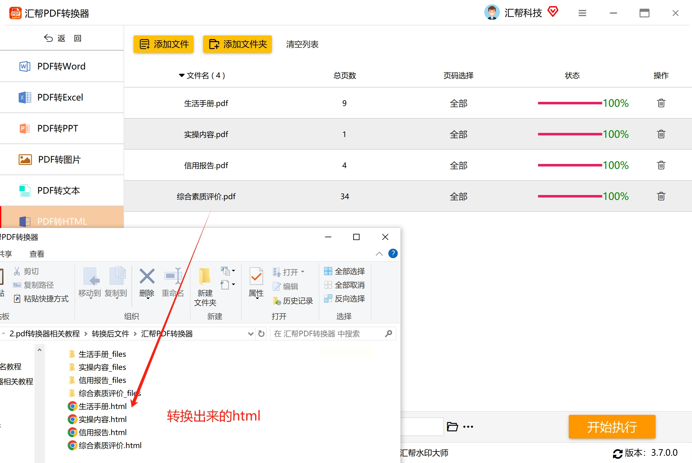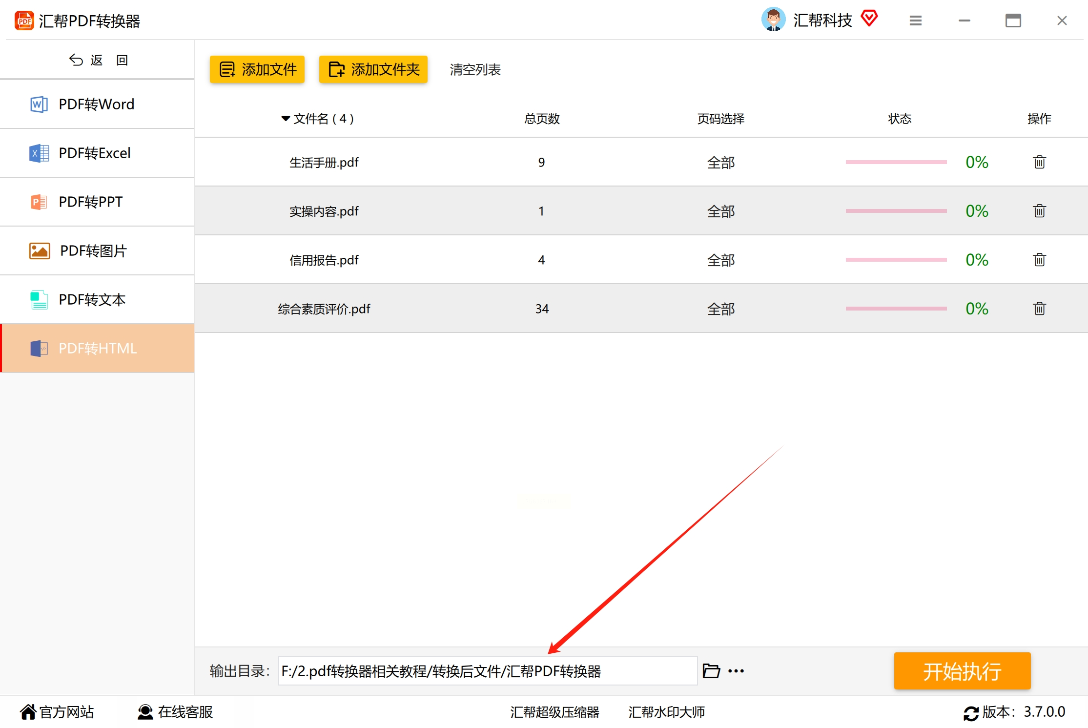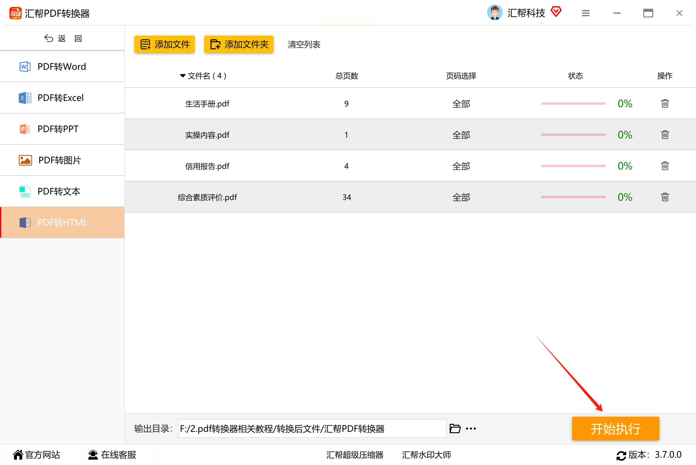 确认文件列表和输出路径无误后,点击“开始执行”按钮。转换过程中可以查看进度条,完成后软件会有提示。