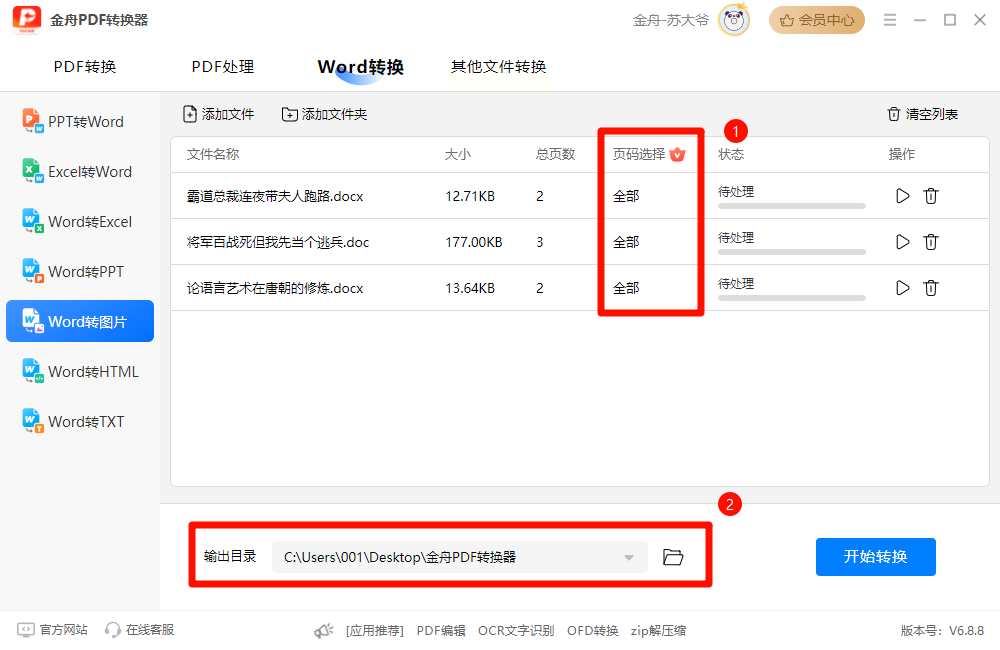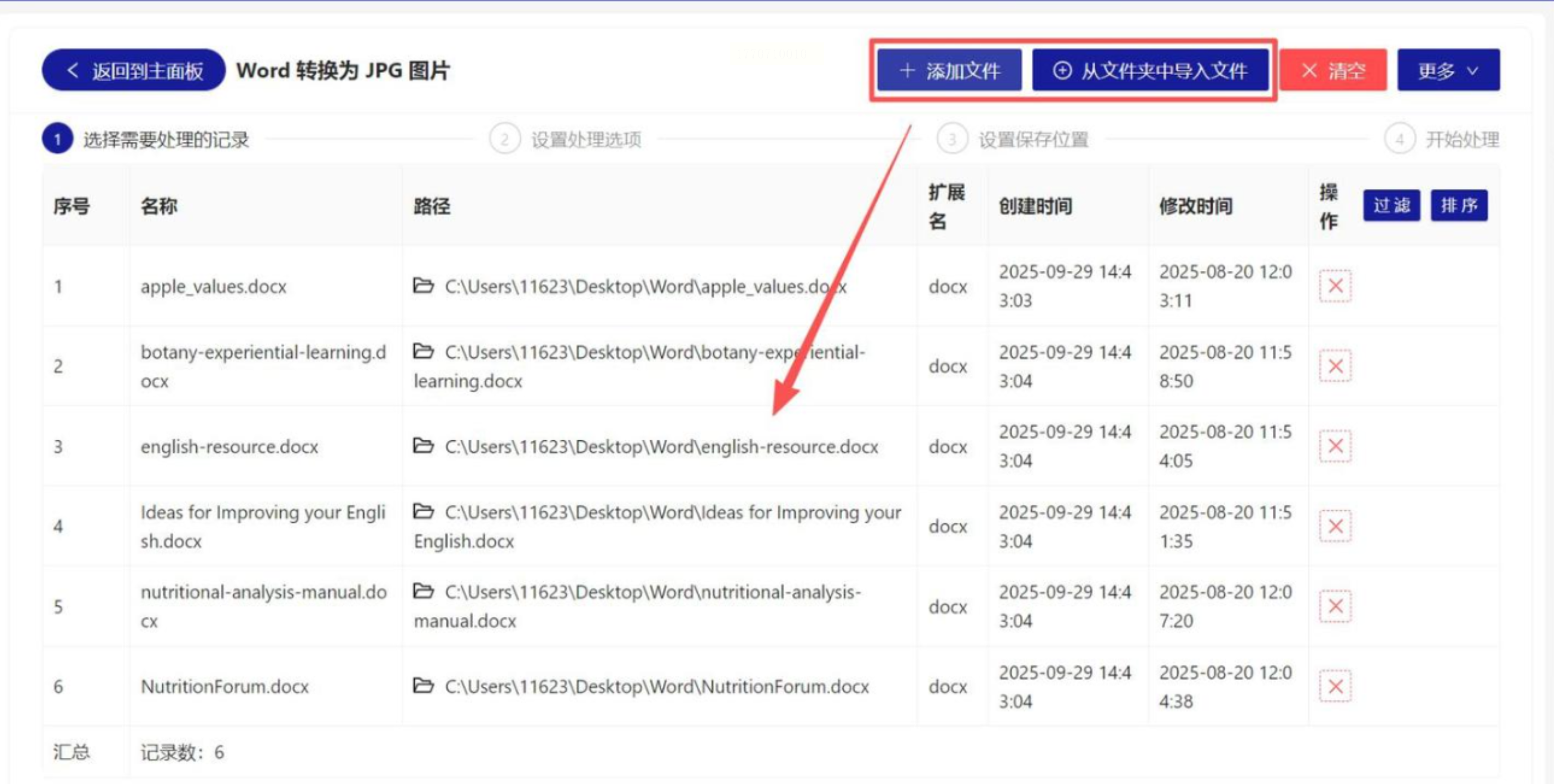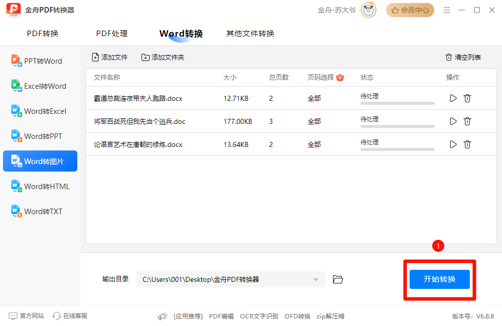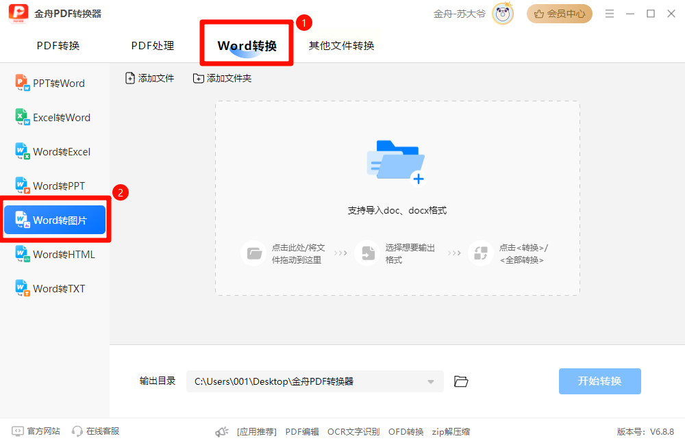 1. 批量导入:支持“文件夹批量添加”功能,点击左侧「Word工具」→「Word转JPG」,直接将整个文件夹拖入处理列表