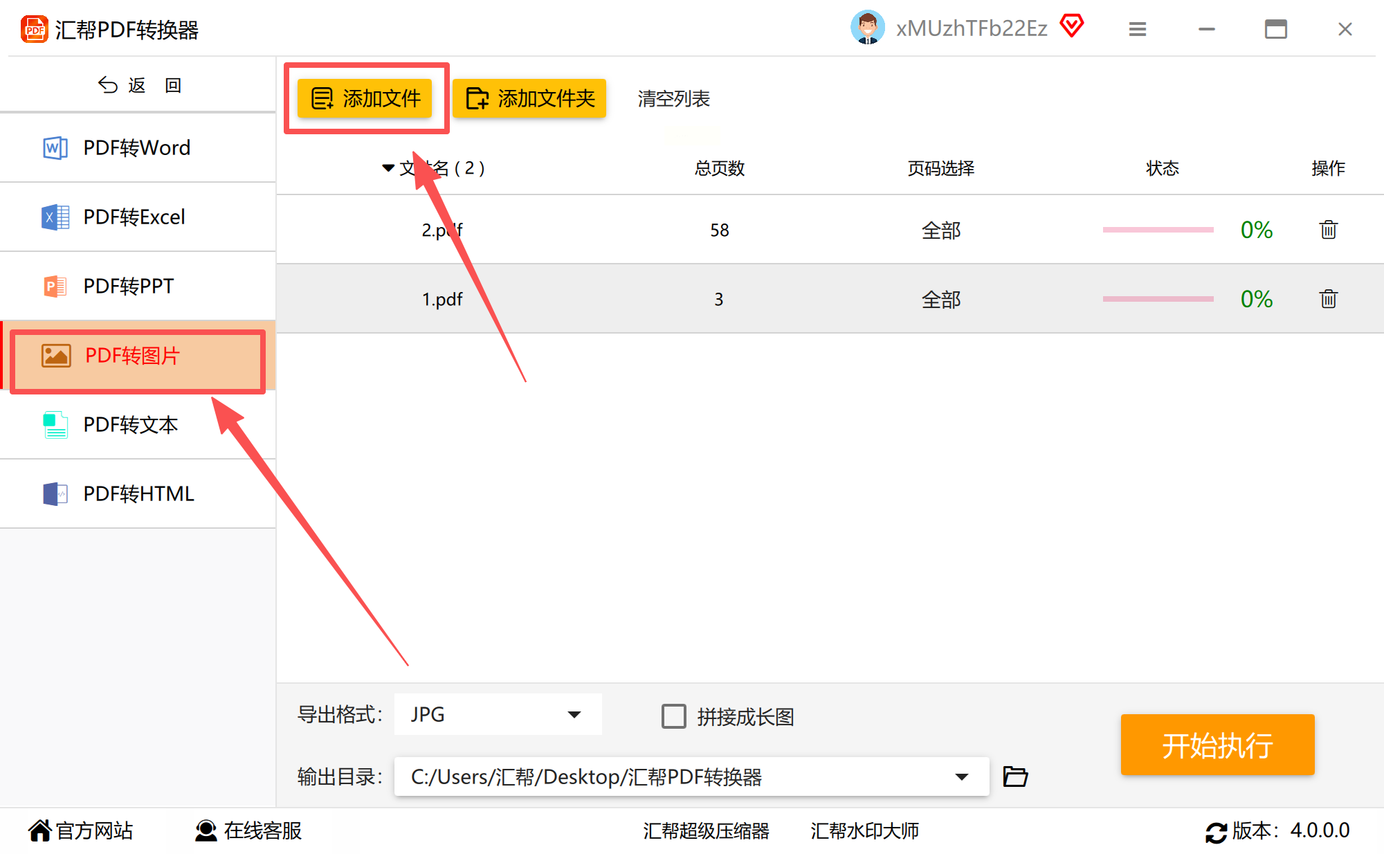 2. 添加文件:支持单文件点击添加或批量拖拽多个PDF文件到列表;
