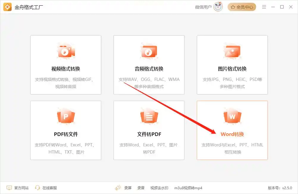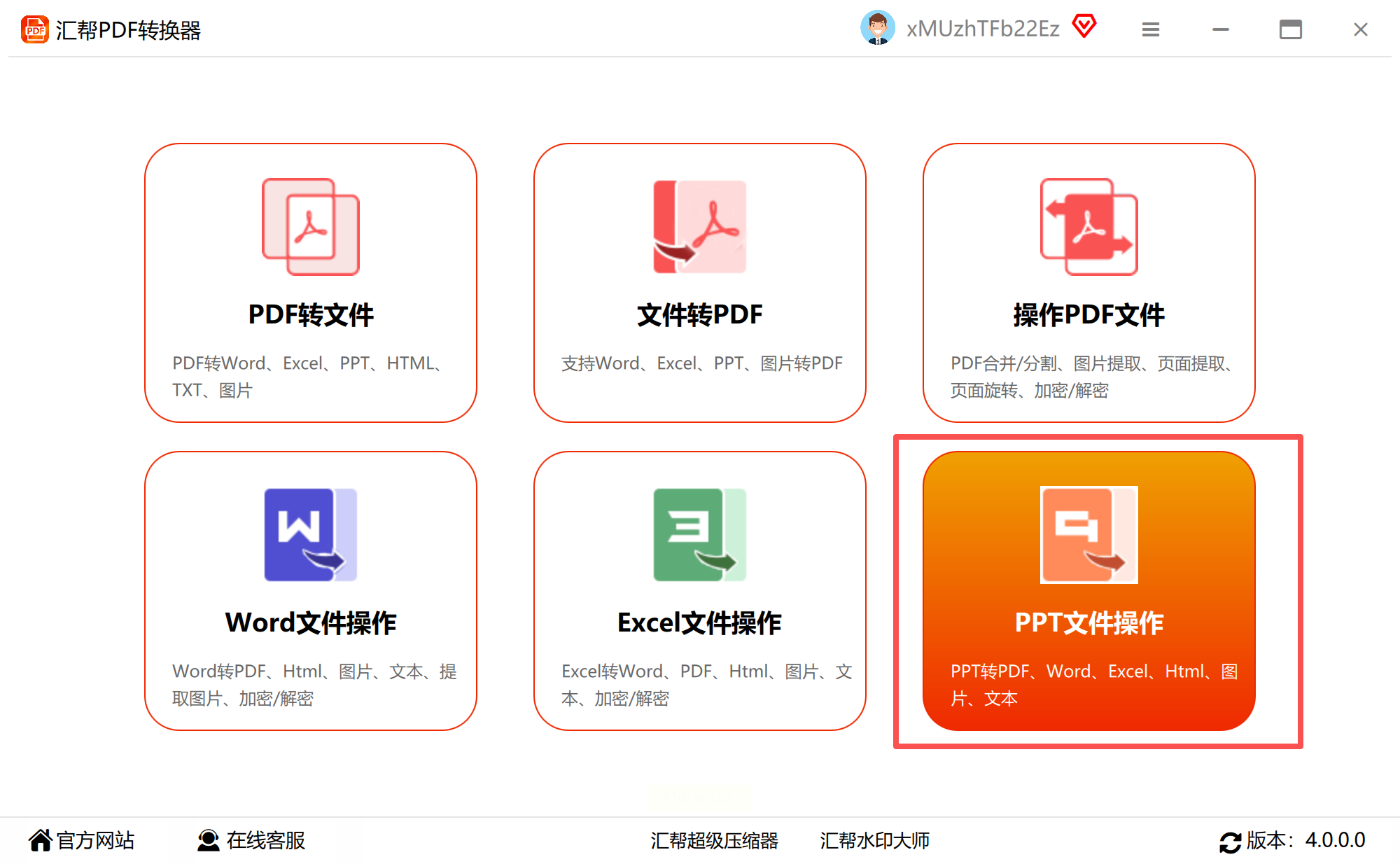 在计算机上成功安装并运行《汇帮PDF转换器》后,您会看到一个直观的功能界面。软件通常将各类转换功能分类排列。请找到并点击与“PPT转换”或“文件转Word”相关的核心功能模块,这里集成了针对演示文稿格式转换的专门工具。