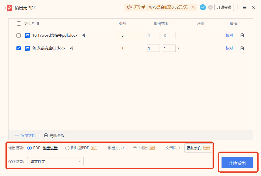 步骤四:文件添加成功后,在界面下方设置输出目录,也就是转换后PDF文件的保存位置。软件通常默认保存在桌面,你也可以点击“浏览”自定义路径。