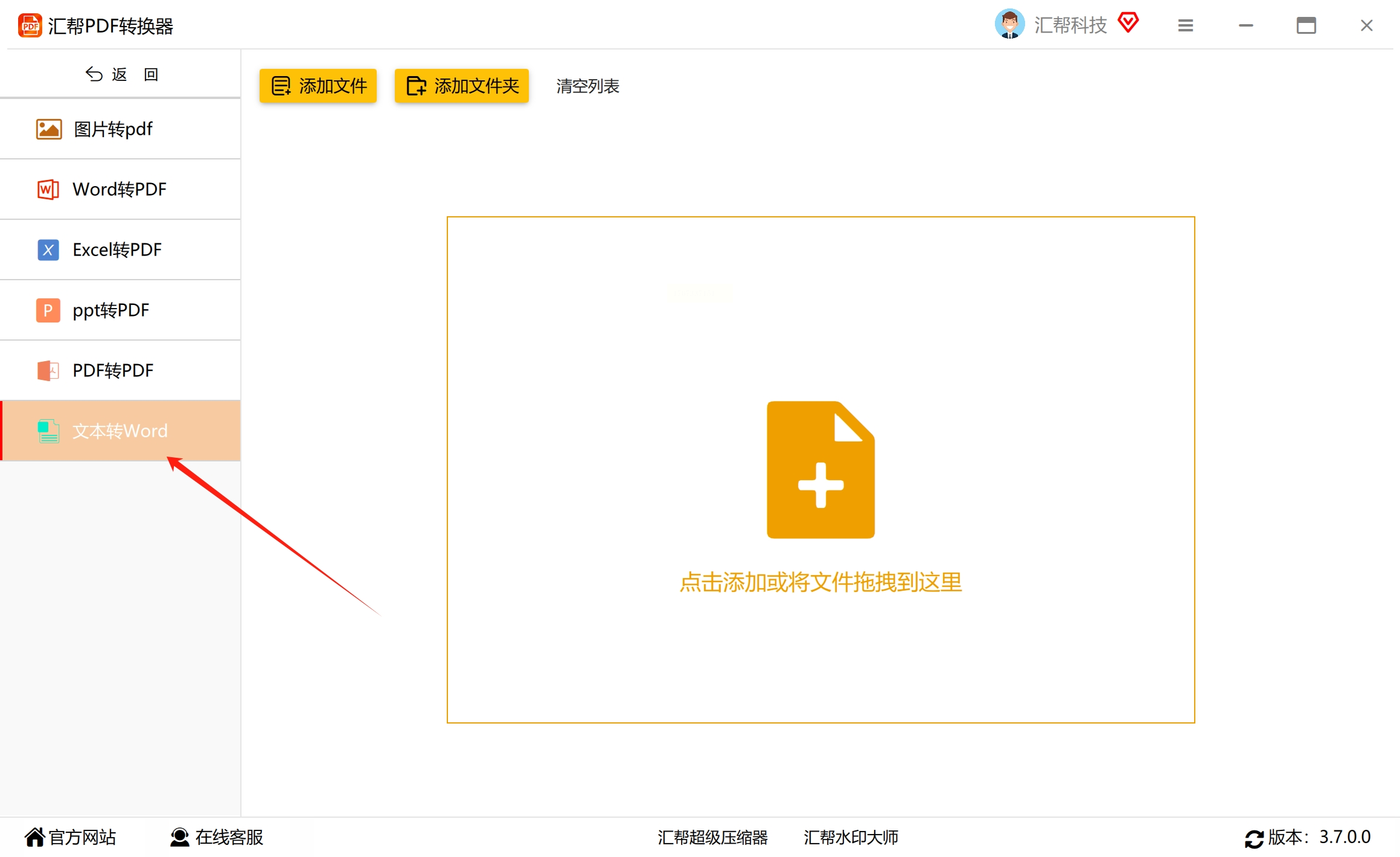 3. 定位转换菜单:在左侧菜单栏中选择“文本转Word”功能。